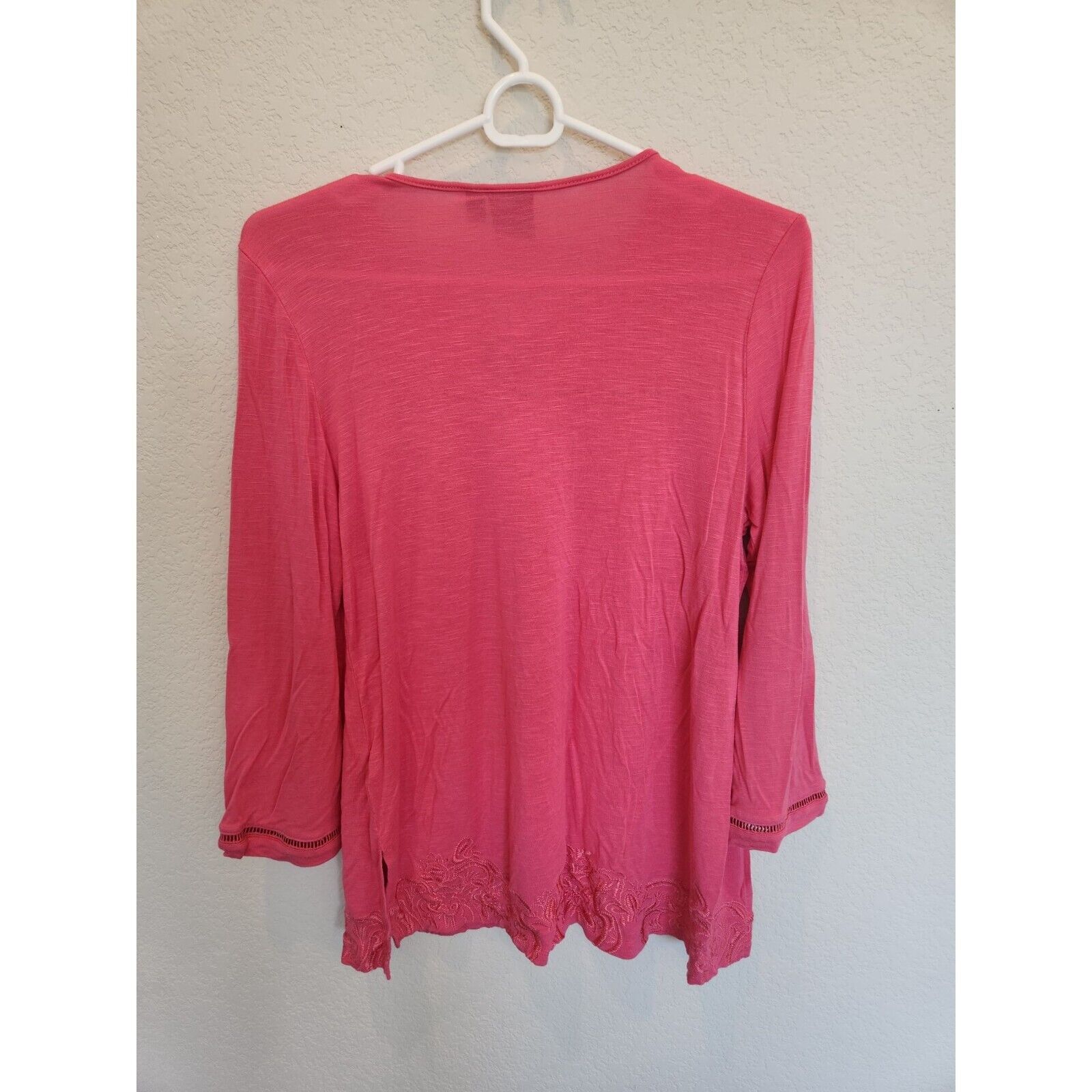 Rafaella Womens Sz S Long Sleeve T Shirt Blouse Embroidered Pink Tie Front