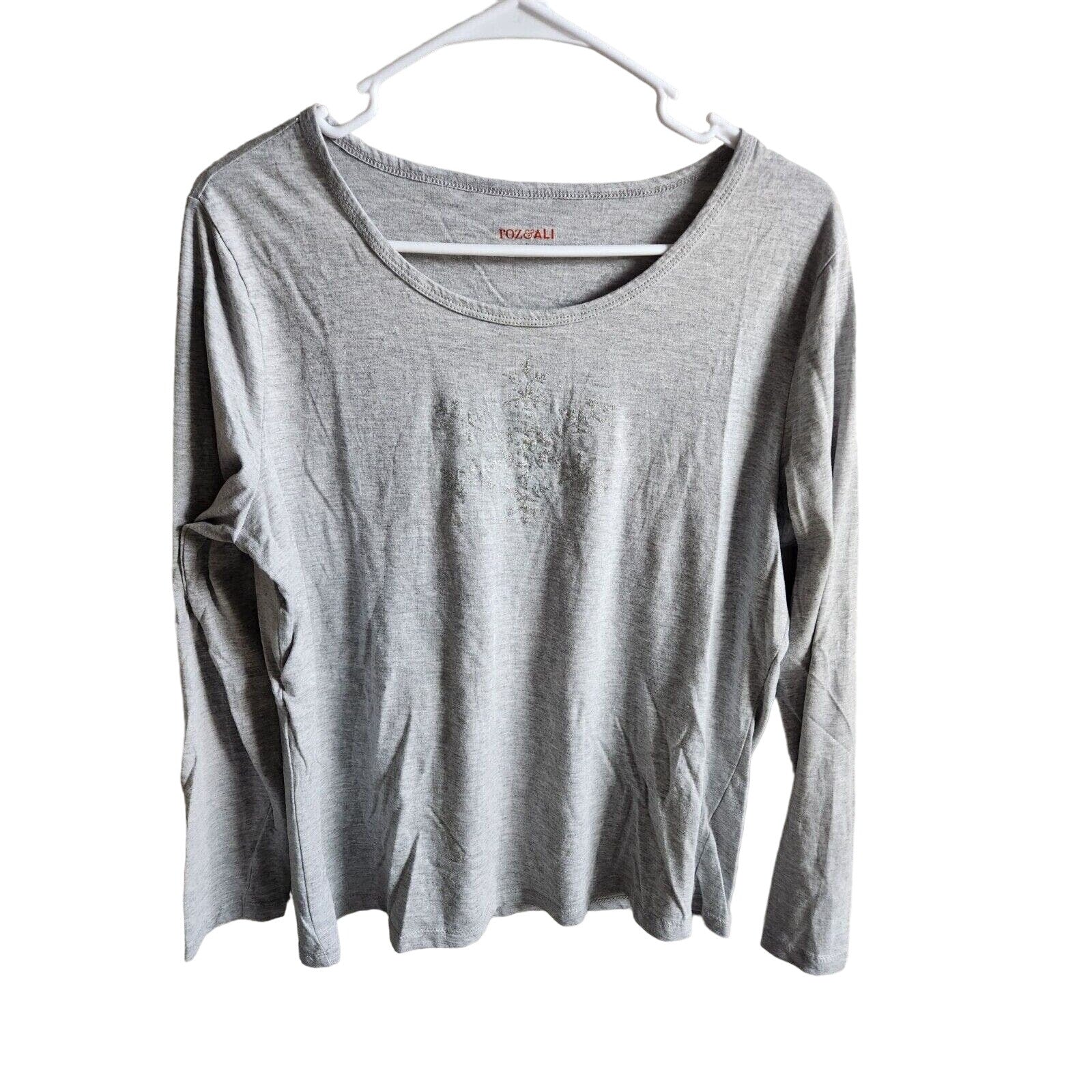 Roz & Ali Womes Sz L Long Sleeve T Shirt Gray Glitter Snowflake Print