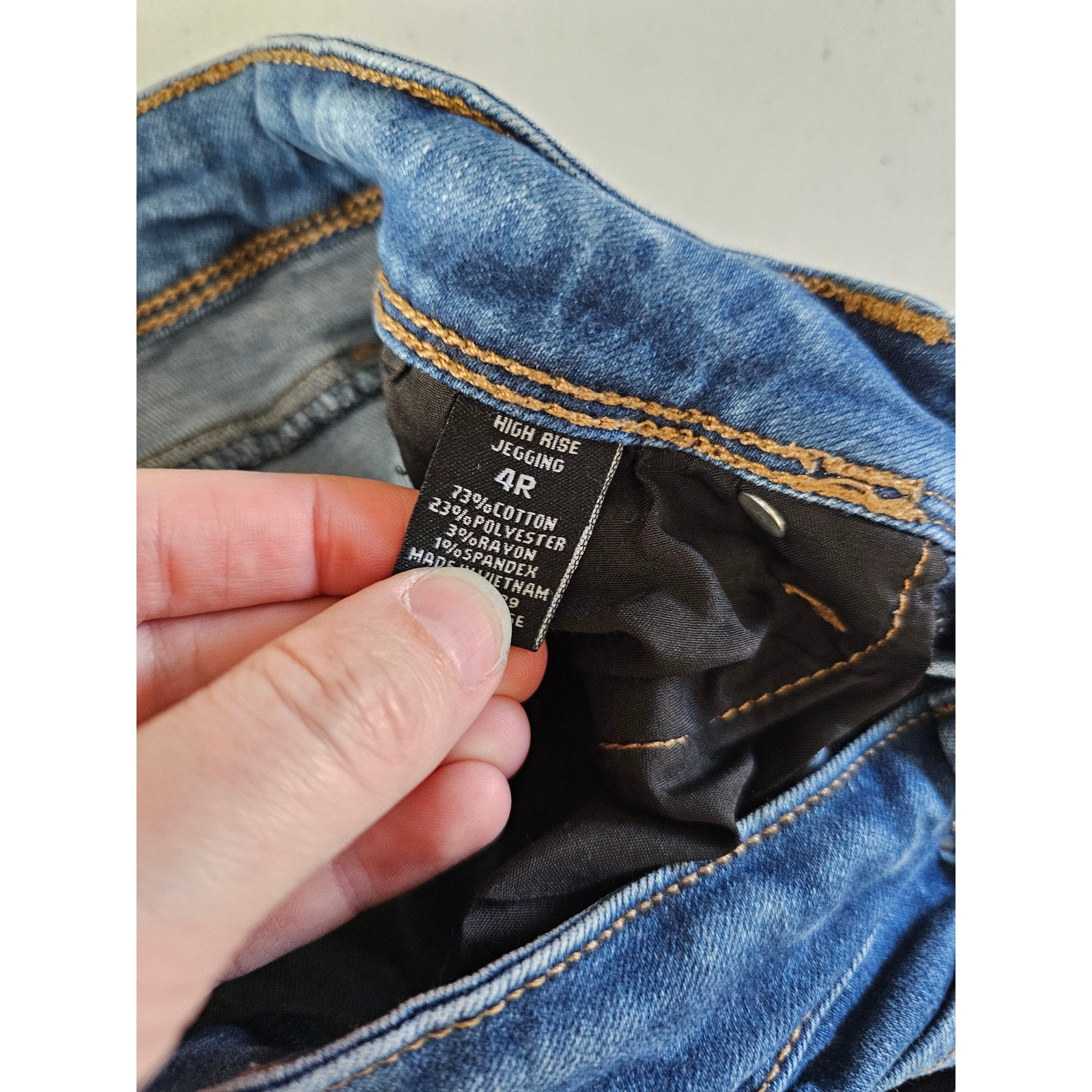 Elevate your wardrobe with these stylish Rue 21 women's high-rise jeggings in a medium wash blue. The comfortable and form-fitting design makes these skinny jeans a must-have for any fashion-forward individual. The versatile color makes them perfect for any occasion, whether you're dressing up or down. The size 4 fit ensures a flattering silhouette, and the quality construction ensures long-lasting wear. Don't miss out on adding these trendy jeggings to your closet.