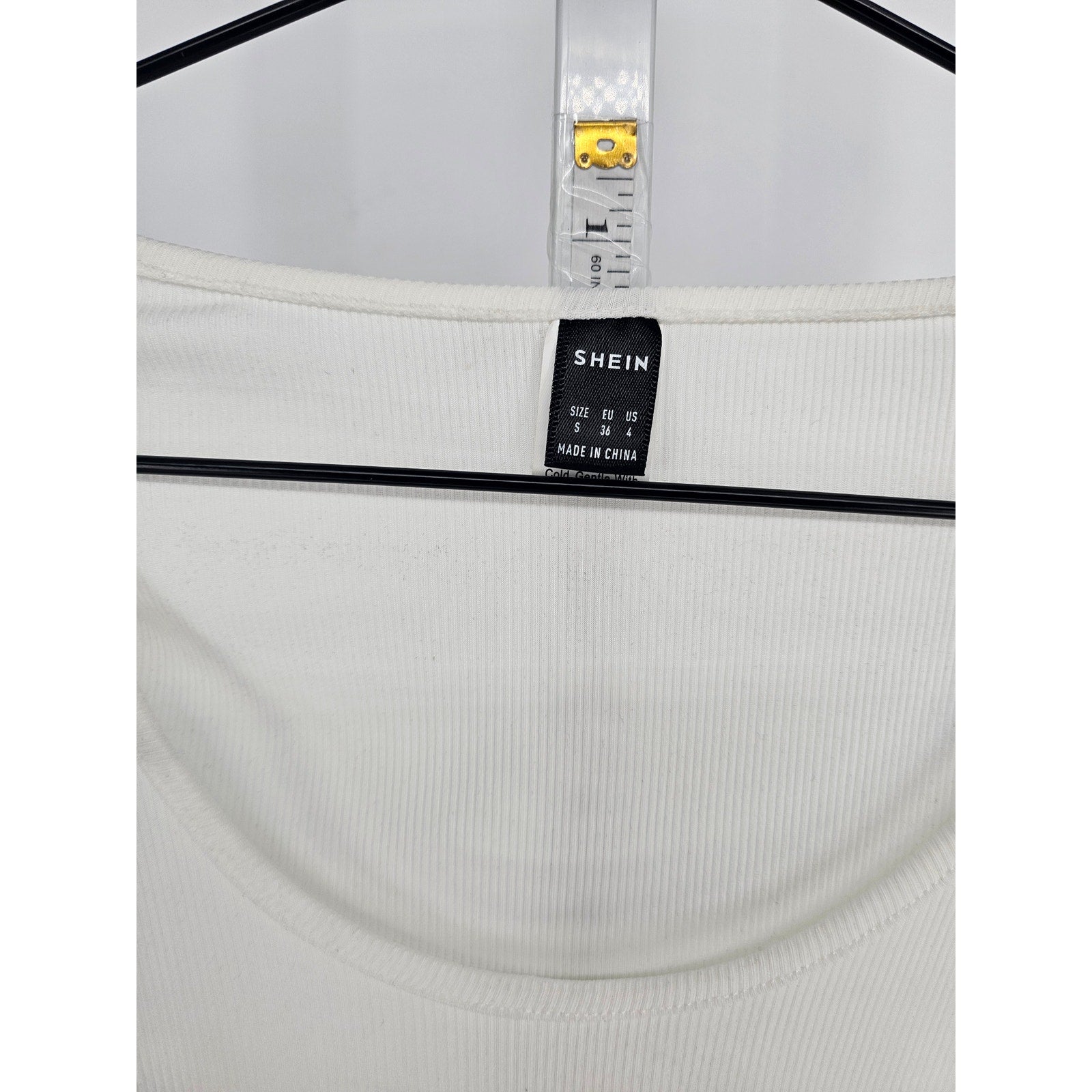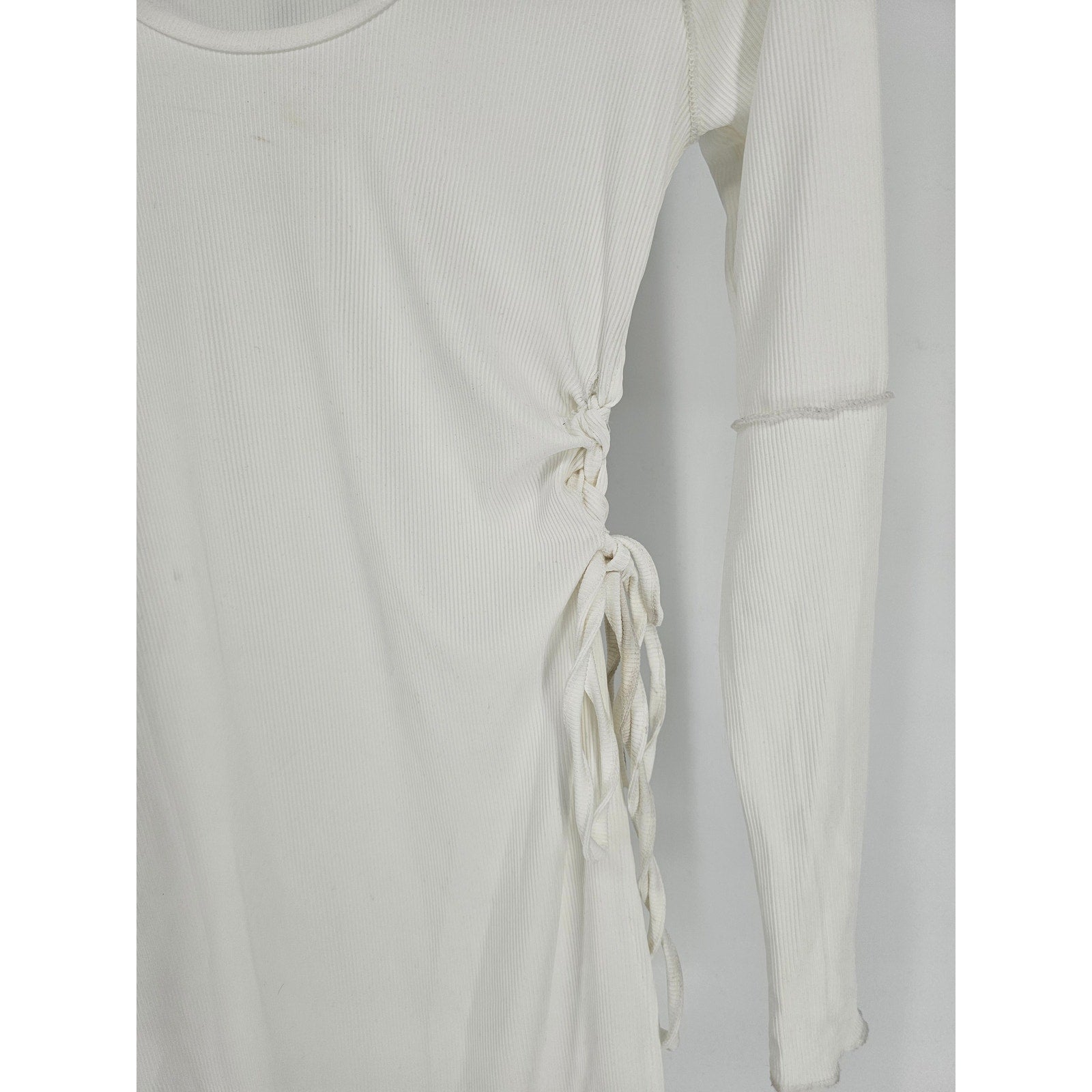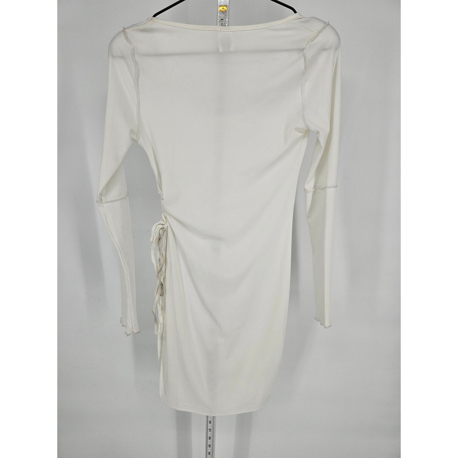 Shein Womens Sz S Long Sleeve Above Knee Dress White Ribbed Tie Side