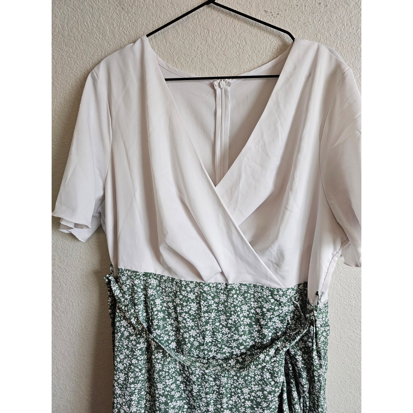 Shein Womens Sz XXL High Low Hem Tie Waist Dress White Green Floral