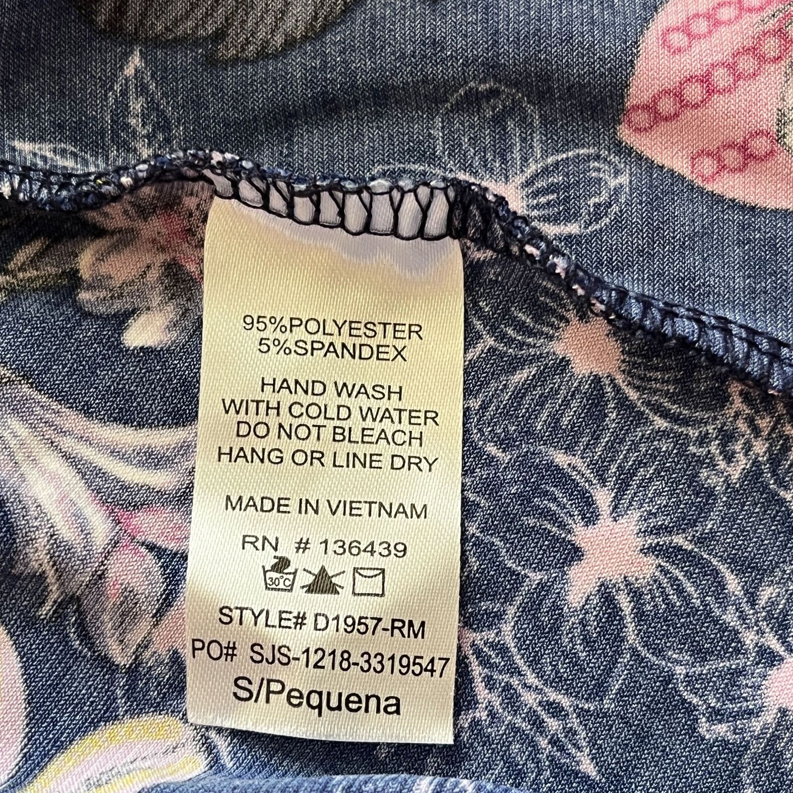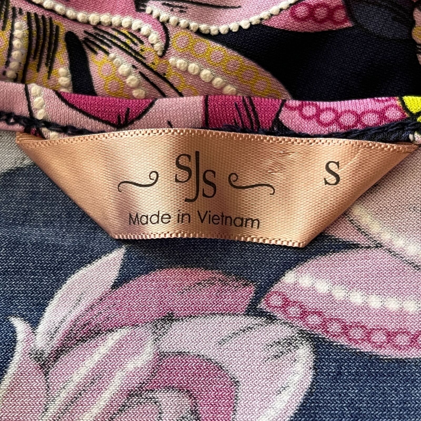 SJS Womens Sz S Knee Length Dress Bell Sleeve Navy Floral