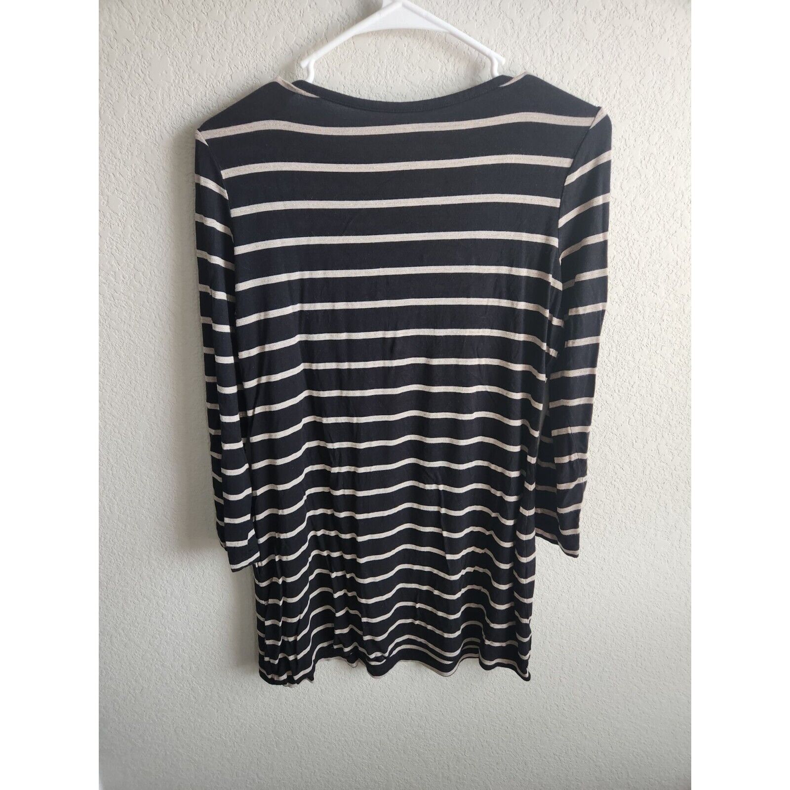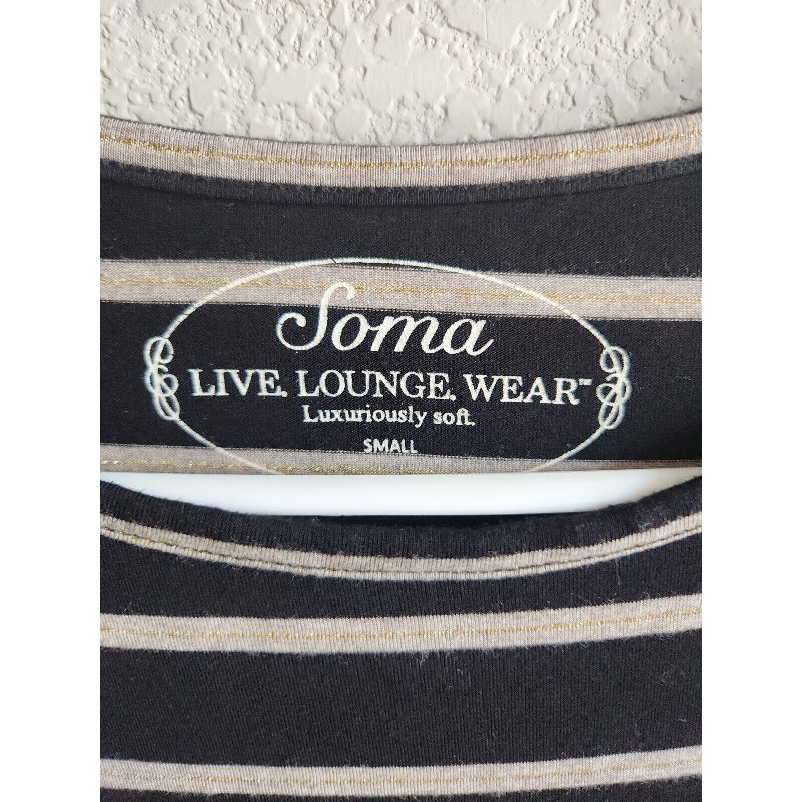 Soma Womens Sz S Long Sleeve Tunic Length Slinky T Shirt Black White Striped