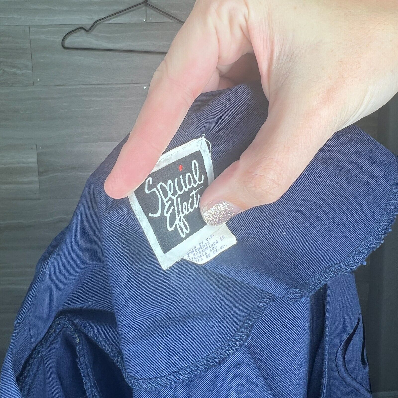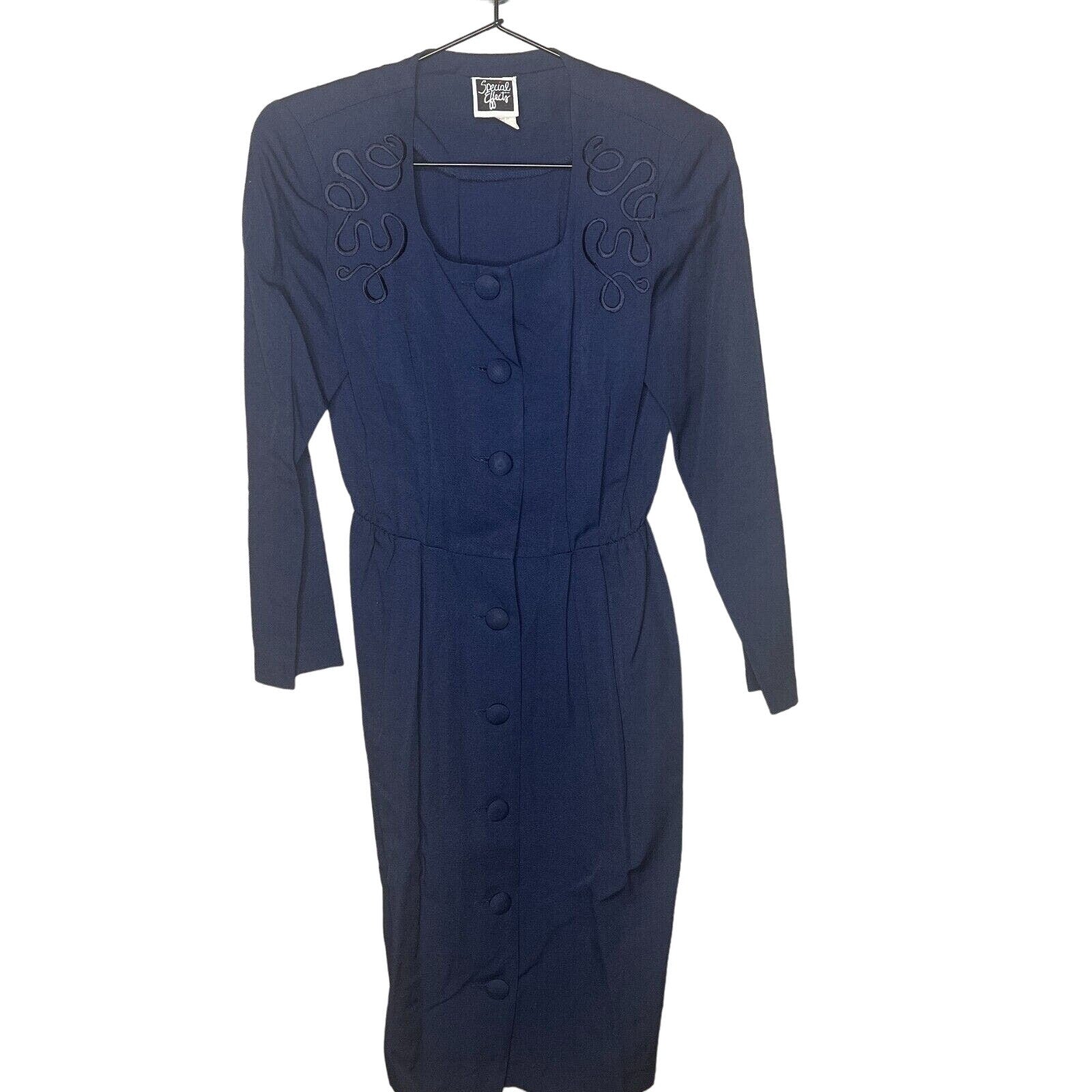 Special Effects Sz Petite 4P Vintage Navy Blue Midi Dress Button front 1980s