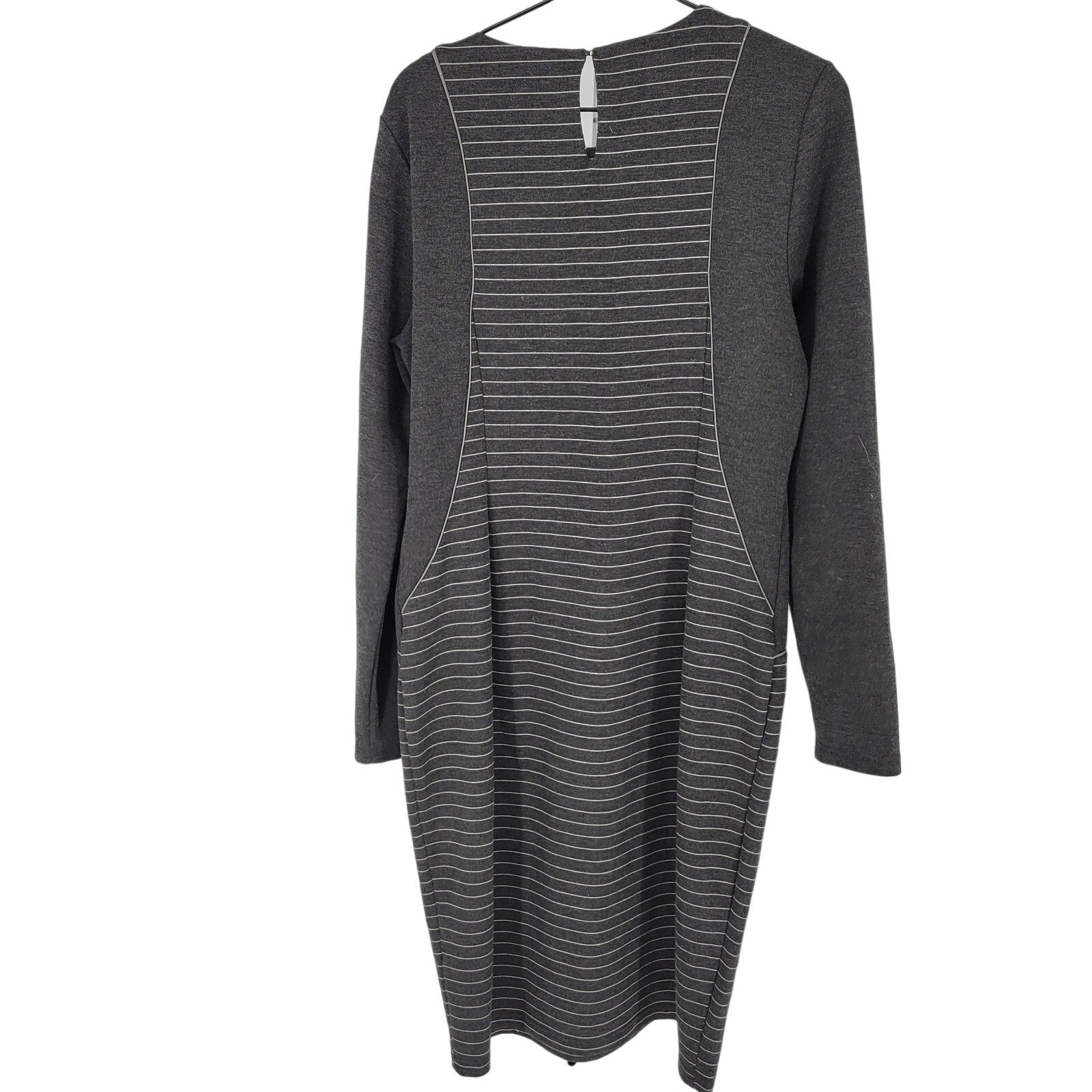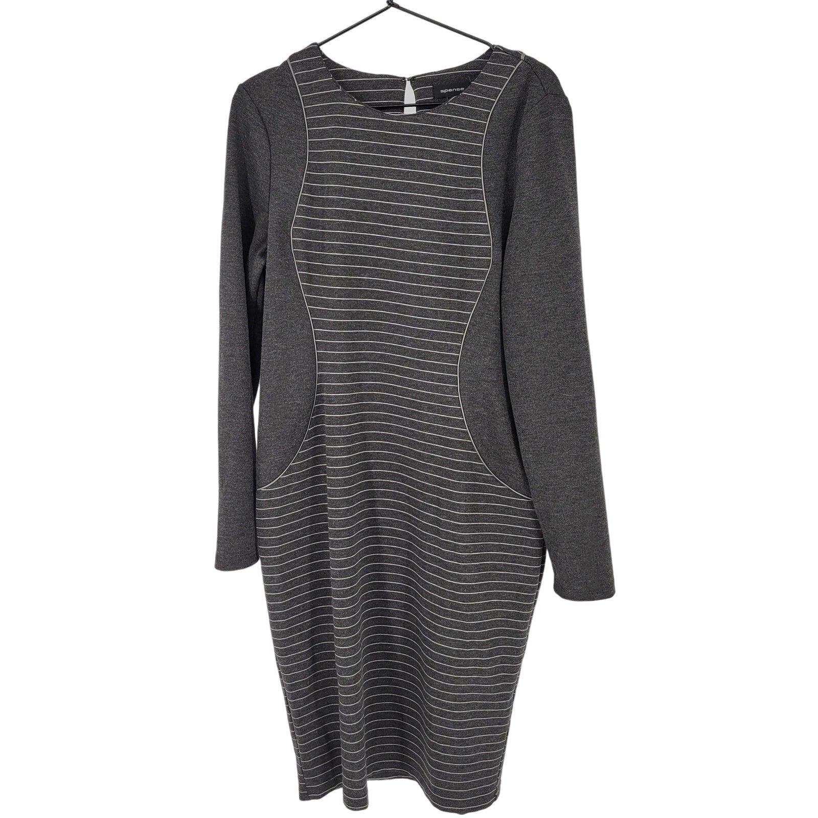 Spense Womens Sz 12 Long Sleeve Midi LEngth Dress Gray White Striped Fitted