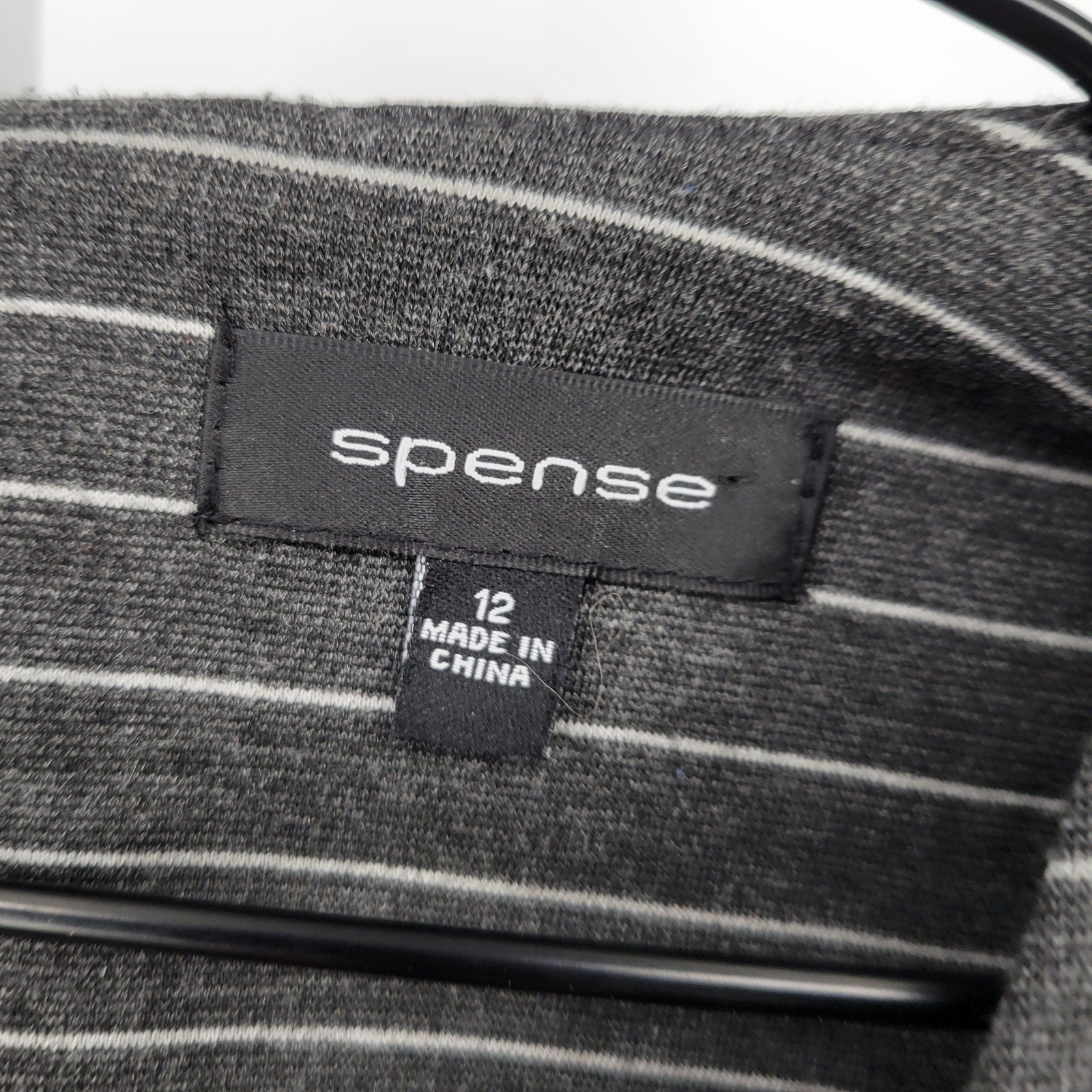 This dress is a stunning addition to any wardrobe. Designed with a sophisticated gray and white striped pattern, this Spense dress is fitted for a flattering silhouette. The long sleeves and midi length make it perfect for any occasion, from a chic office look to a night out on the town. Made for a women's size 12, this dress is sure to turn heads.