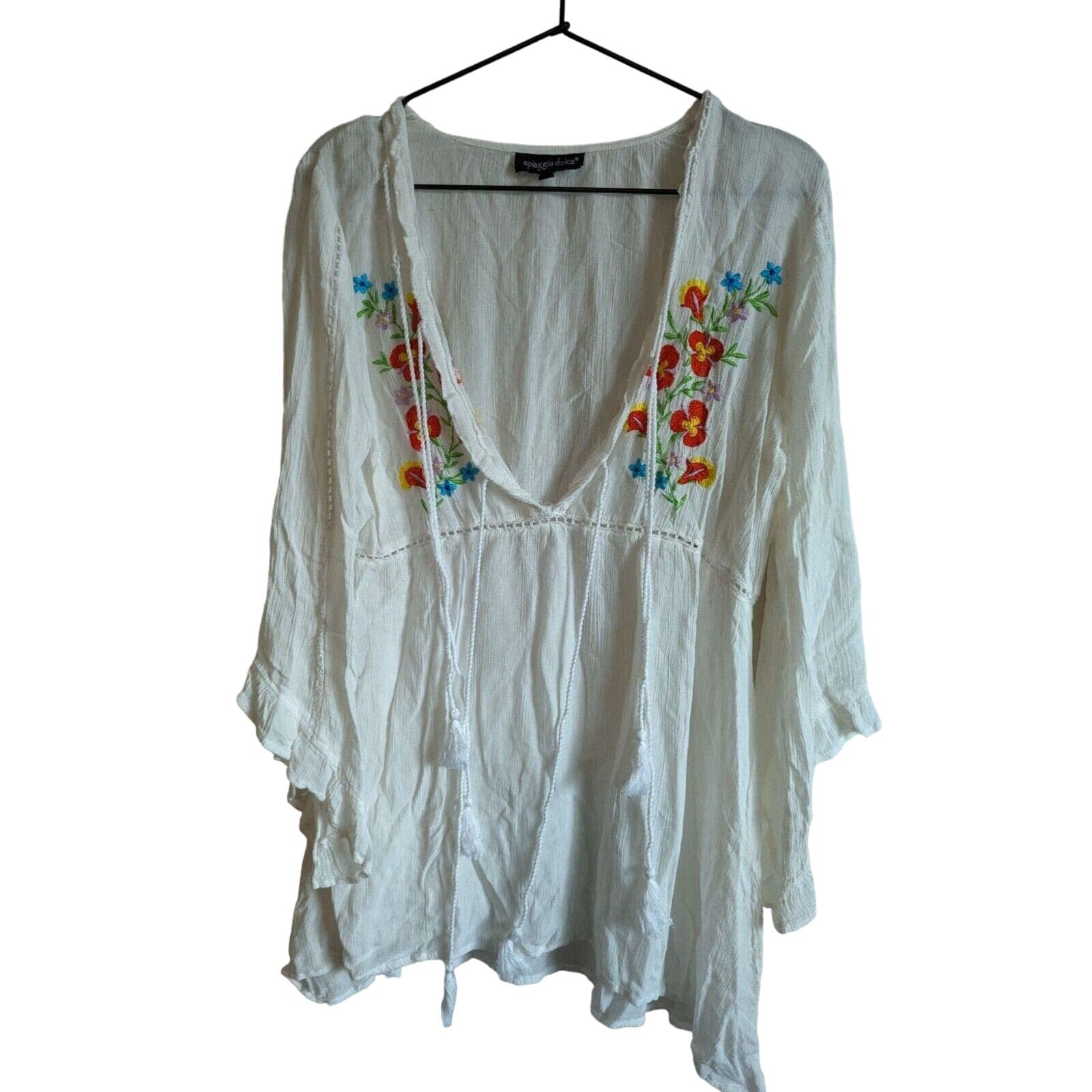 Spiaggia Dolce Womens Sz M Swimsuit Coverup Dress White Floral Embroidered