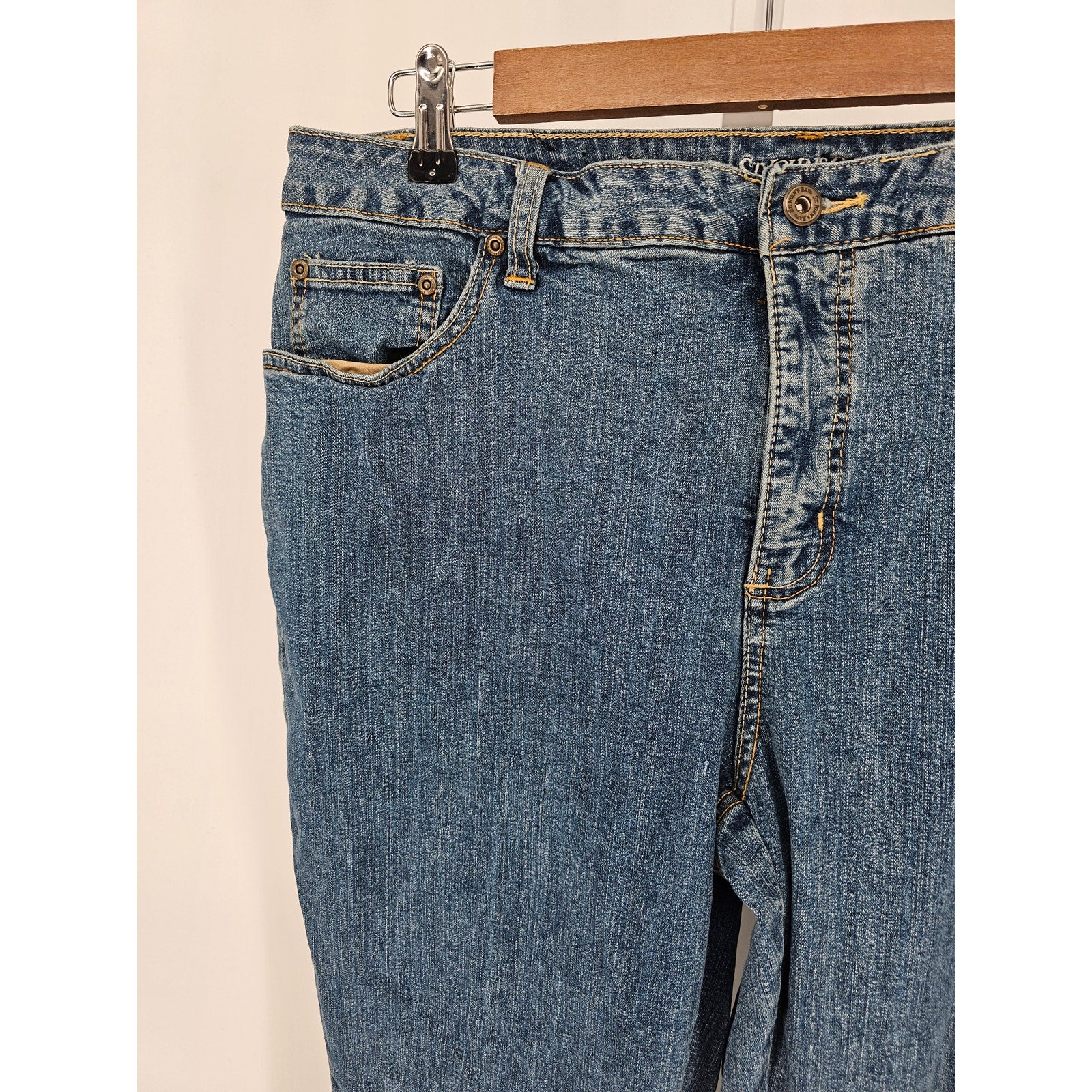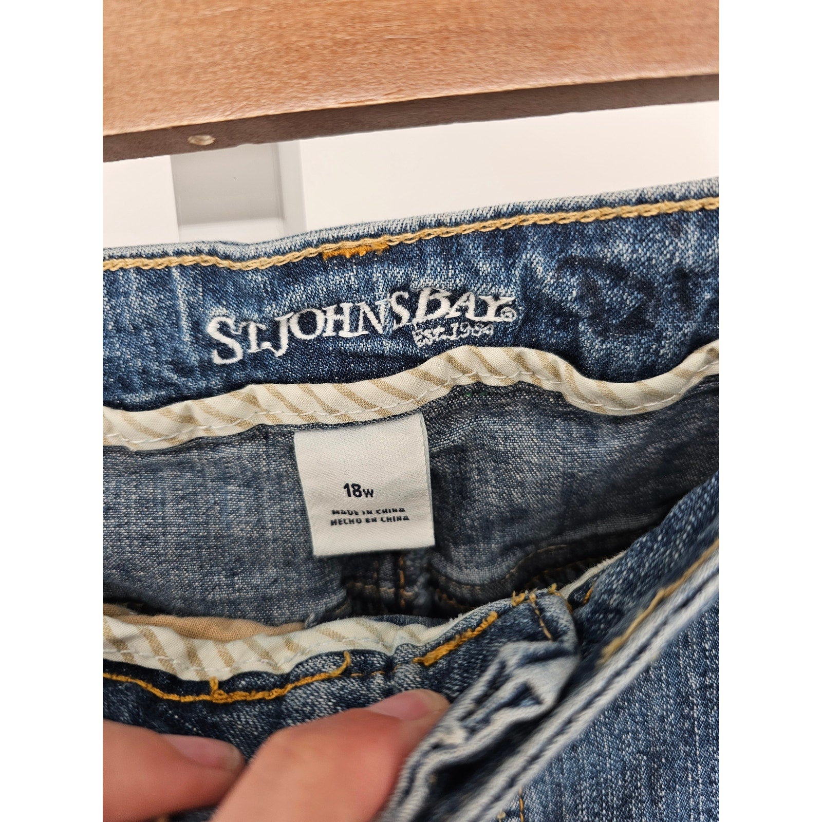 These St. John's Bay women's bootcut jeans are perfect for any casual occasion. The medium wash cotton fabric provides a comfortable and relaxed fit, while the blue color adds a touch of sophistication to the overall look. The jeans are sized at 18W, making them a great choice for women who want to feel comfortable and stylish. Whether you're running errands or going out for a lunch with friends, these jeans are sure to make you look and feel great. They are part of the Antiques category, which adds a unique and timeless element to your wardrobe. So why wait? Add these St. John's Bay women's bootcut jeans to your collection today and experience the perfect combination of comfort, style, and sophistication!