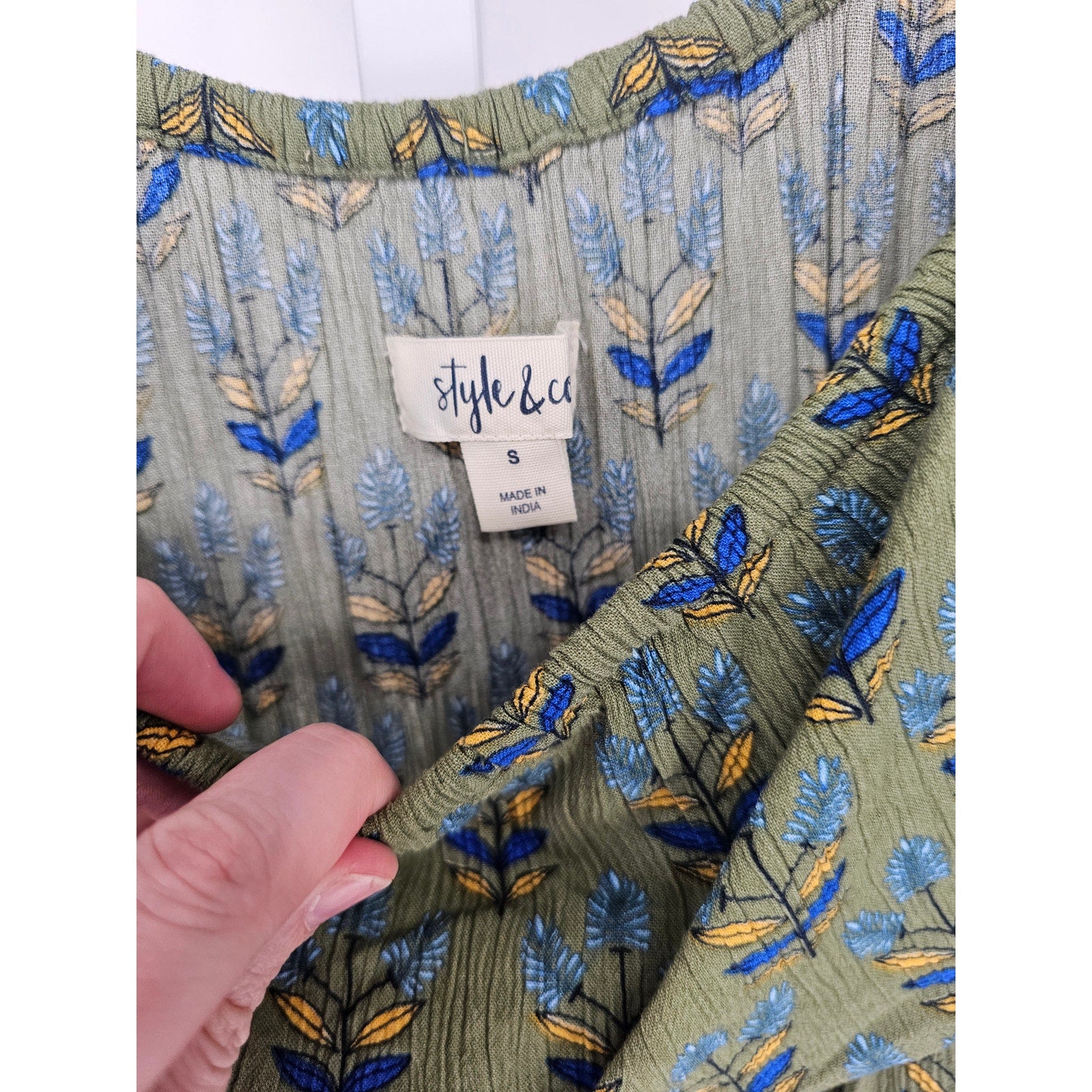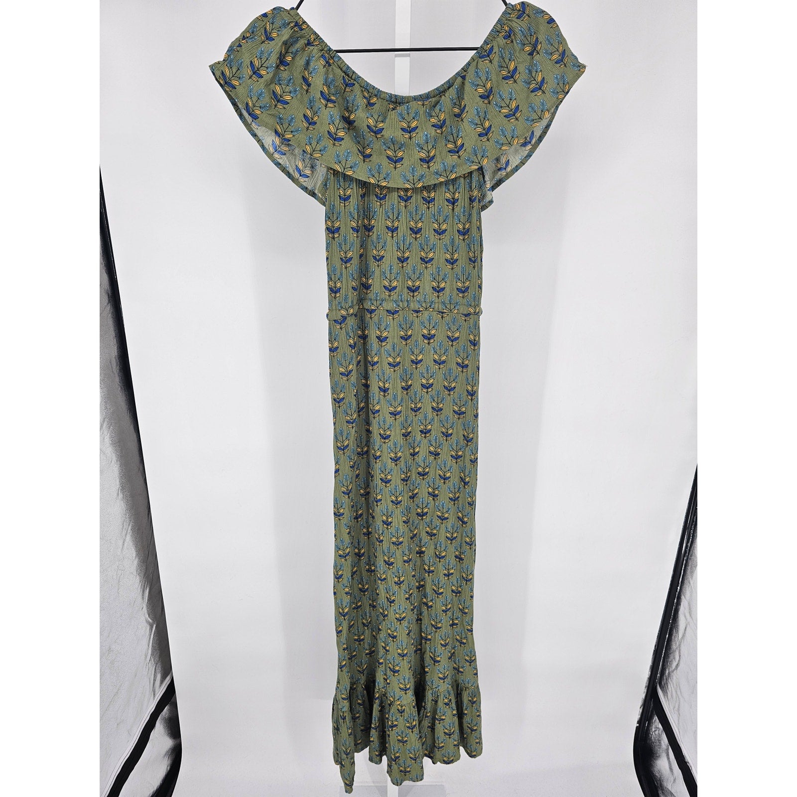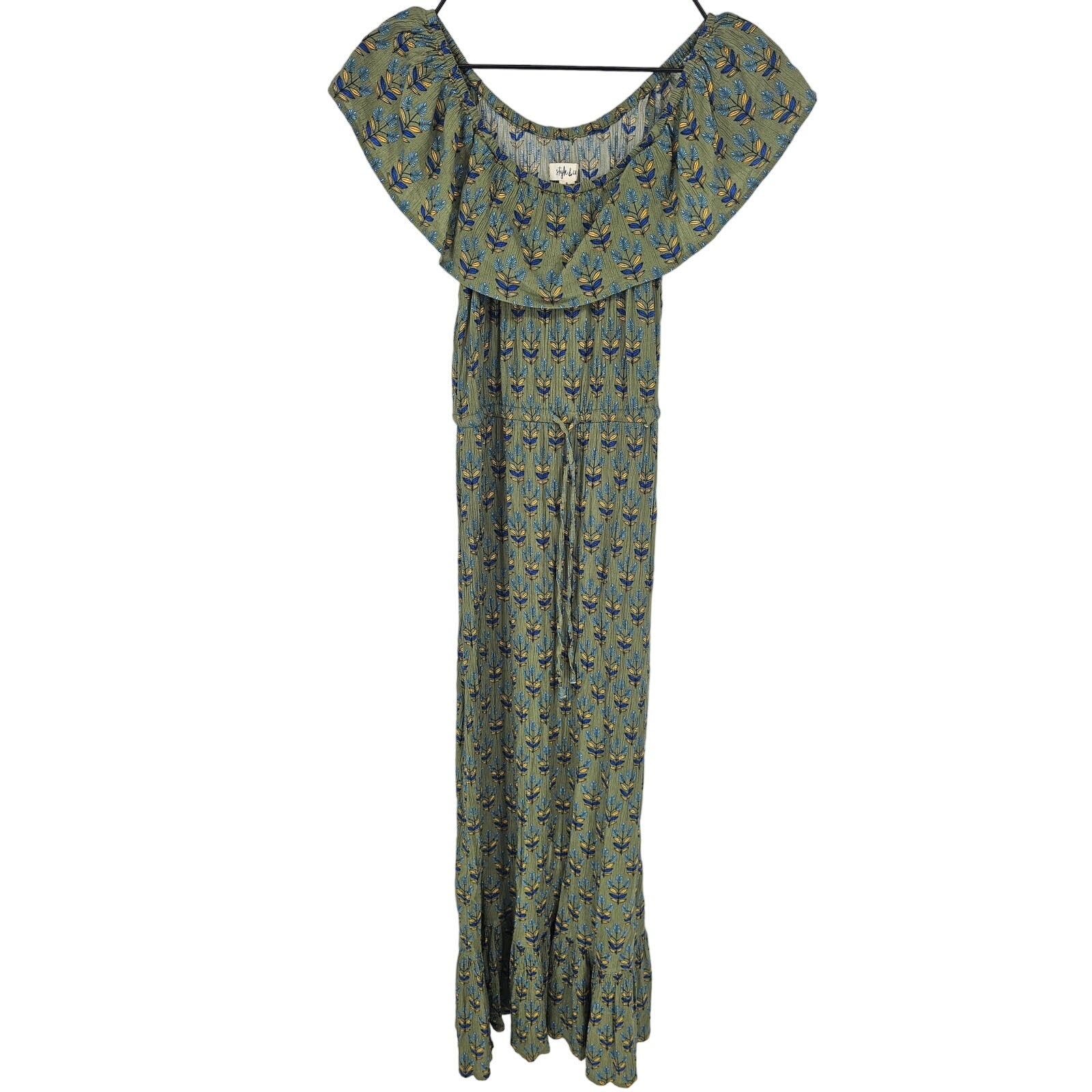 Style & co Womens Sz S Maxi Length Off Shoulder Boho Dress Dark Green Floral