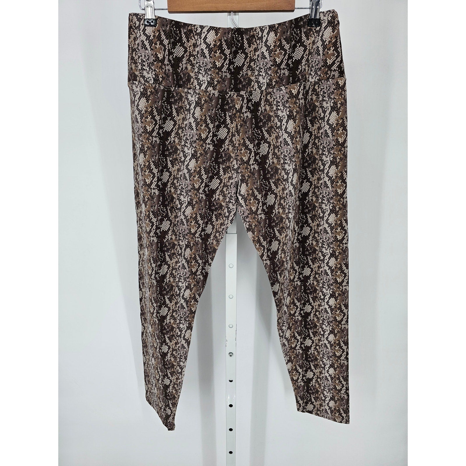 Suave Leggings Womens Sz L Snakeskin Print Tummy Control Leggings Brown