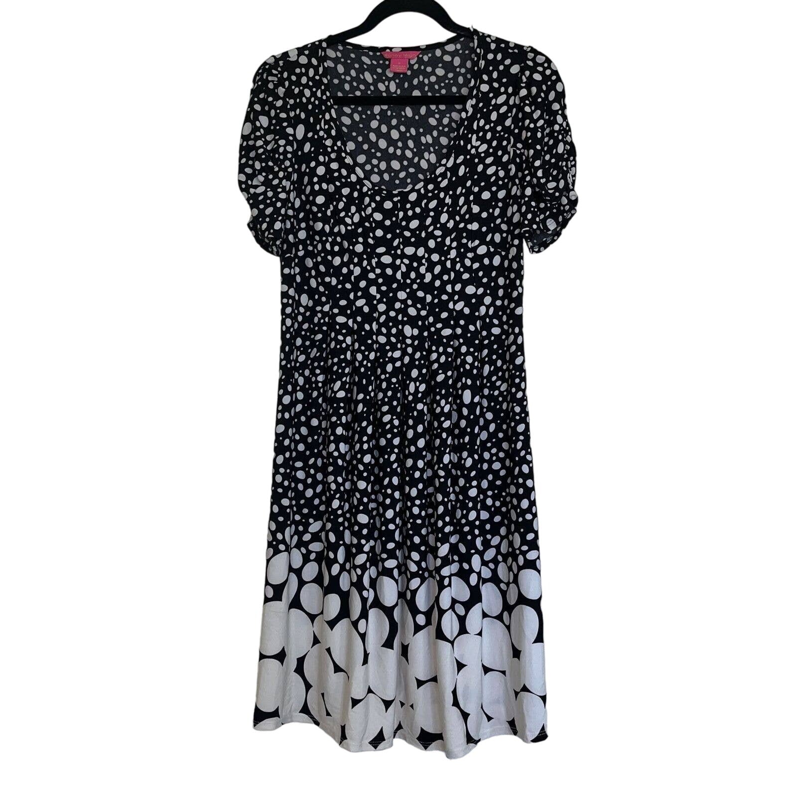 Sunny Leigh Womens Sz M Short Sleeve Midi Dress Black White Dots