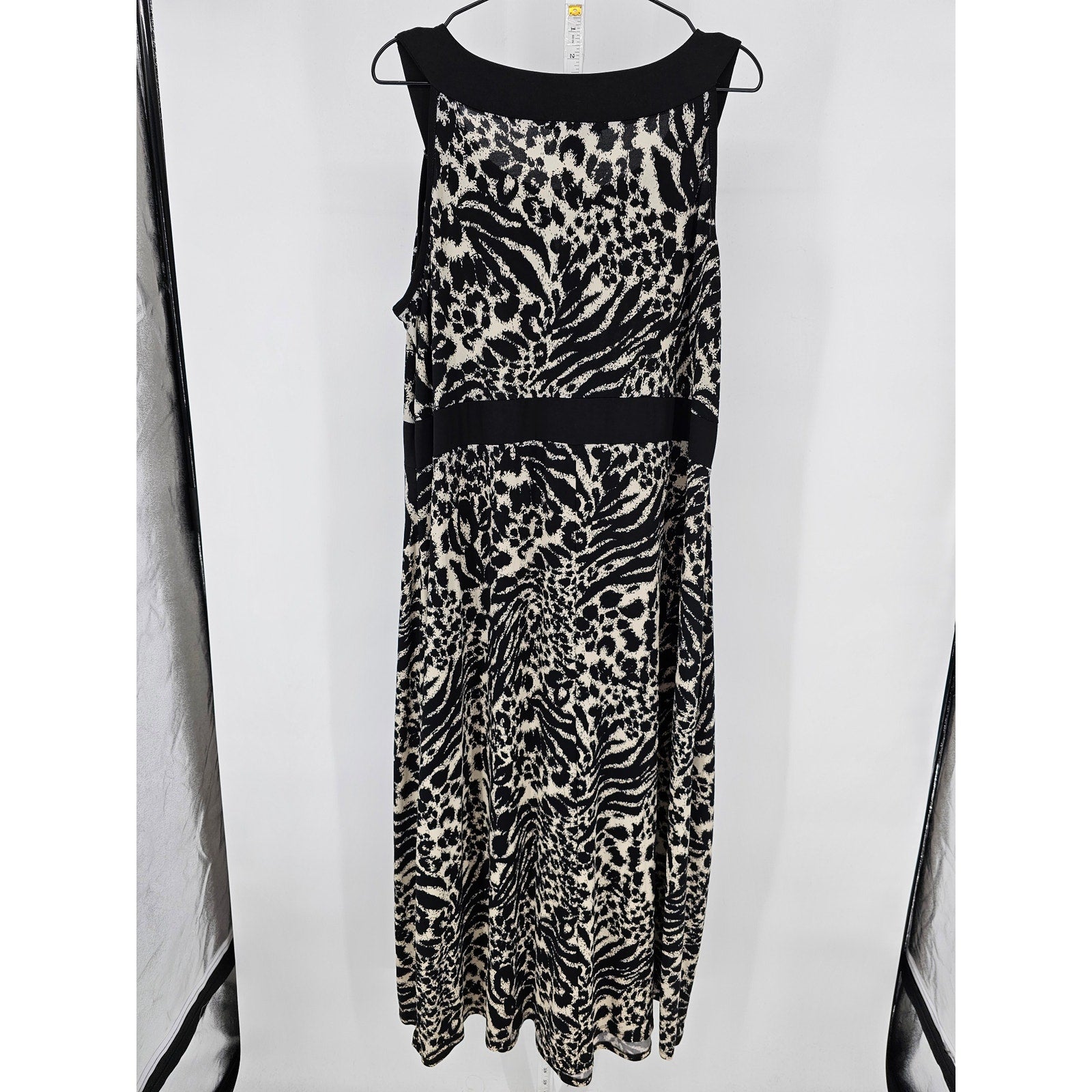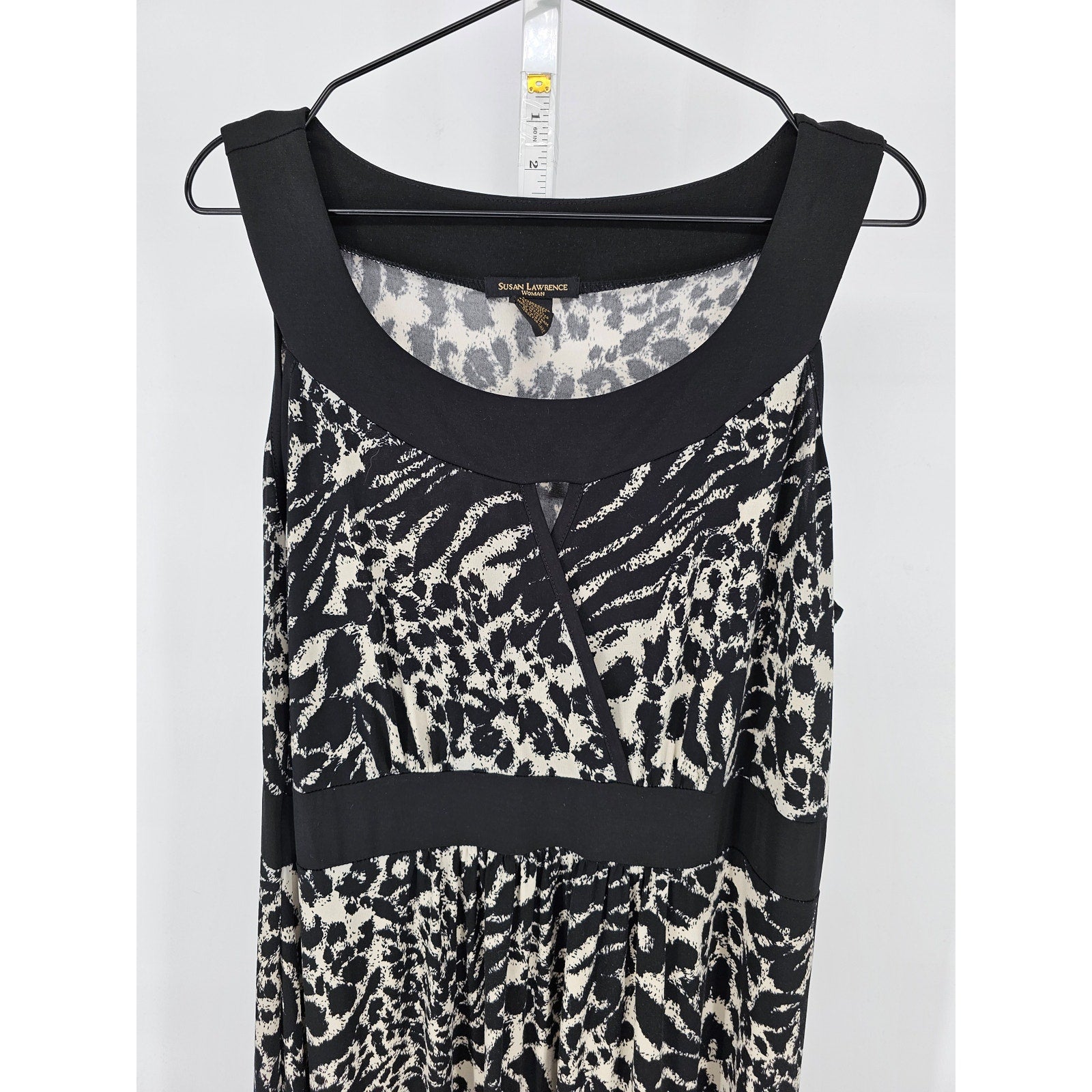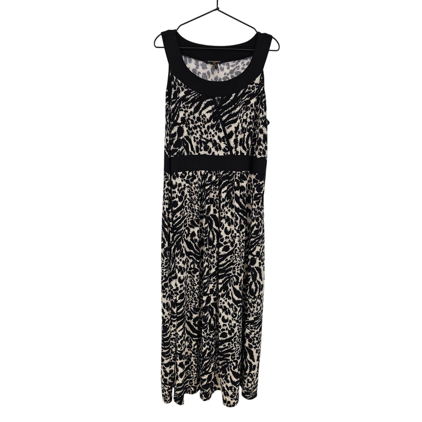 Susan Lawrence Womens Sz 2X Maxi Length Sleeveless Dress Black Beige Animal
