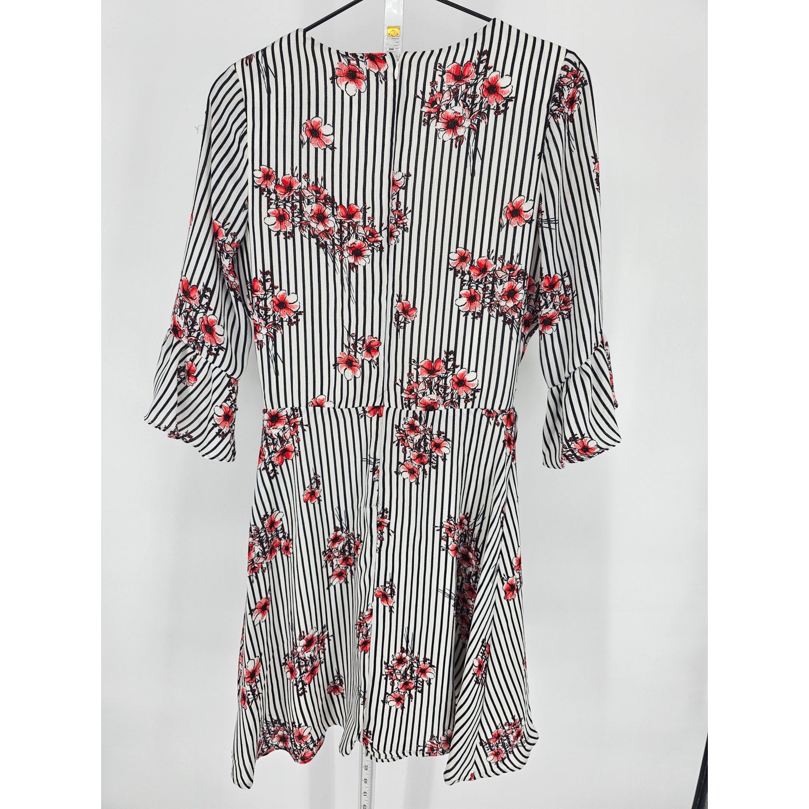 Takara Juniors Sz 5 Knee Length Bell Sleeve Faux Wrap Dress Striped Floral