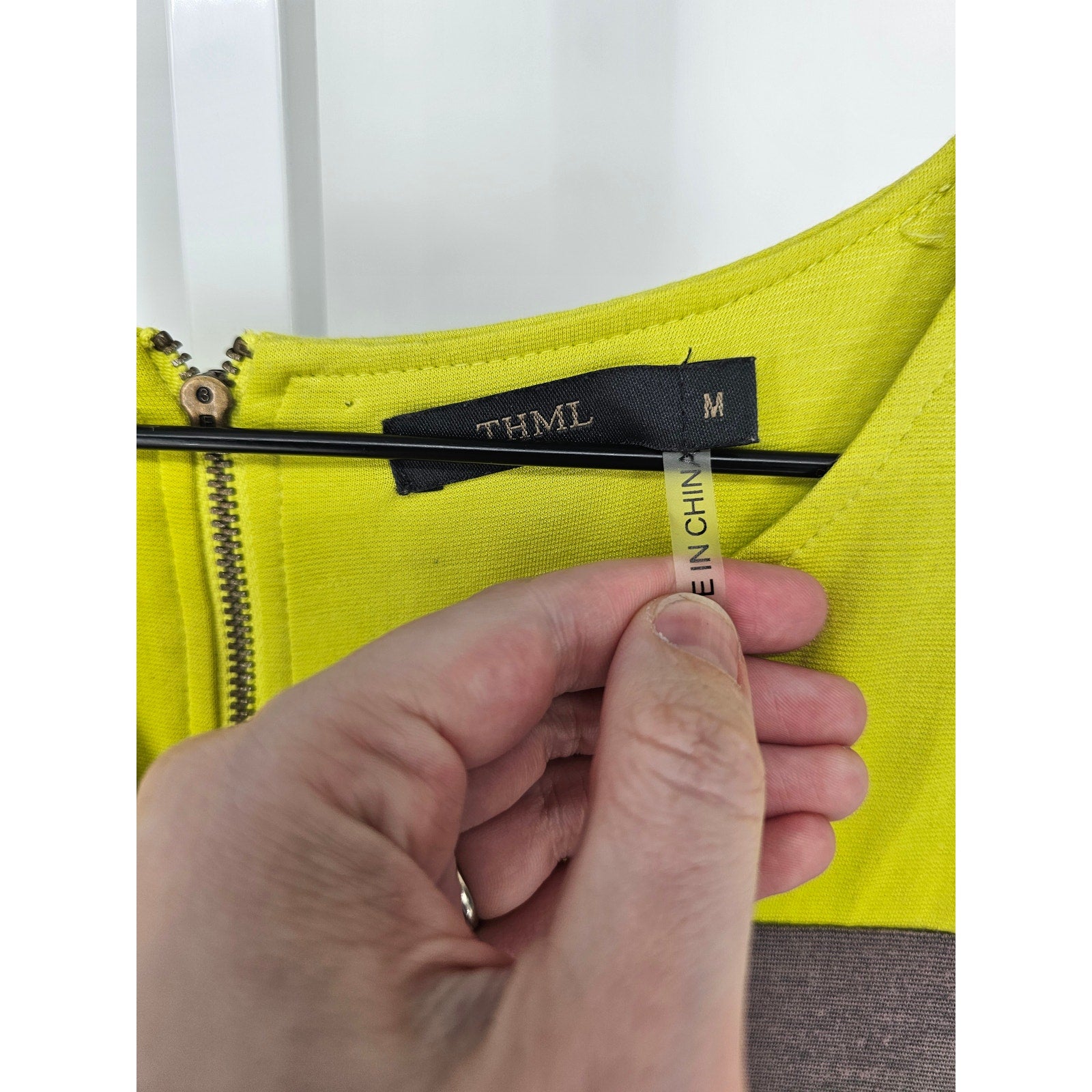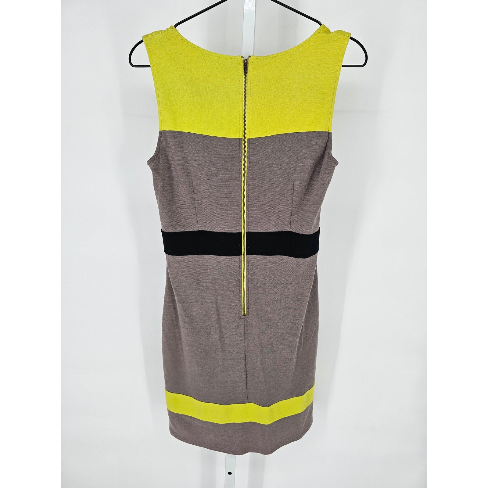 THML Womens Sz M Knee Length Mod Color Block Dress Lime Green Gray Sleeveless