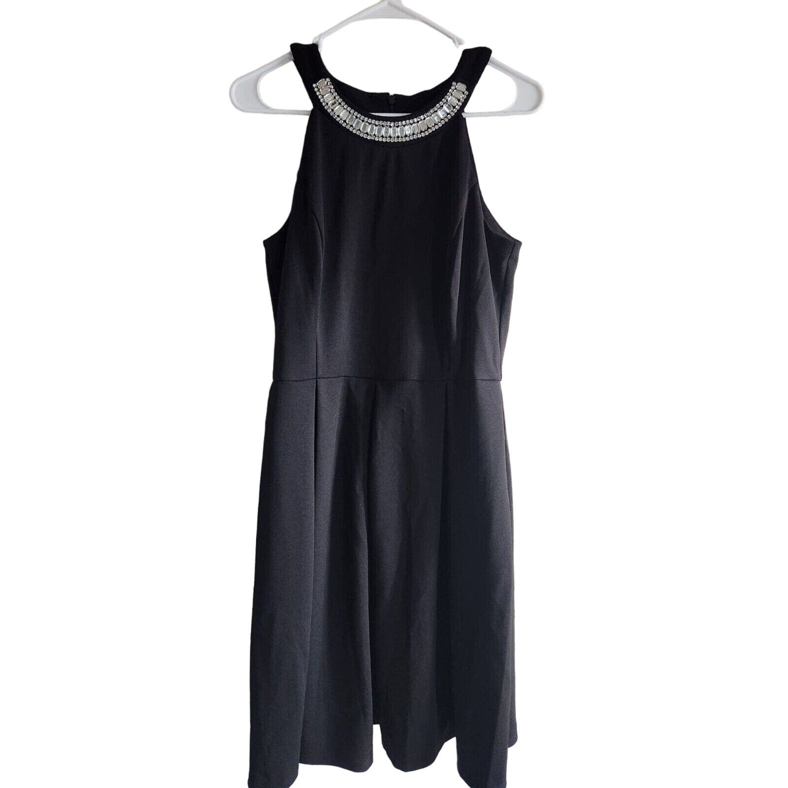 Tiana B Womens Sz 10 Black Midi Dress Rhinestone Neckline A Line
