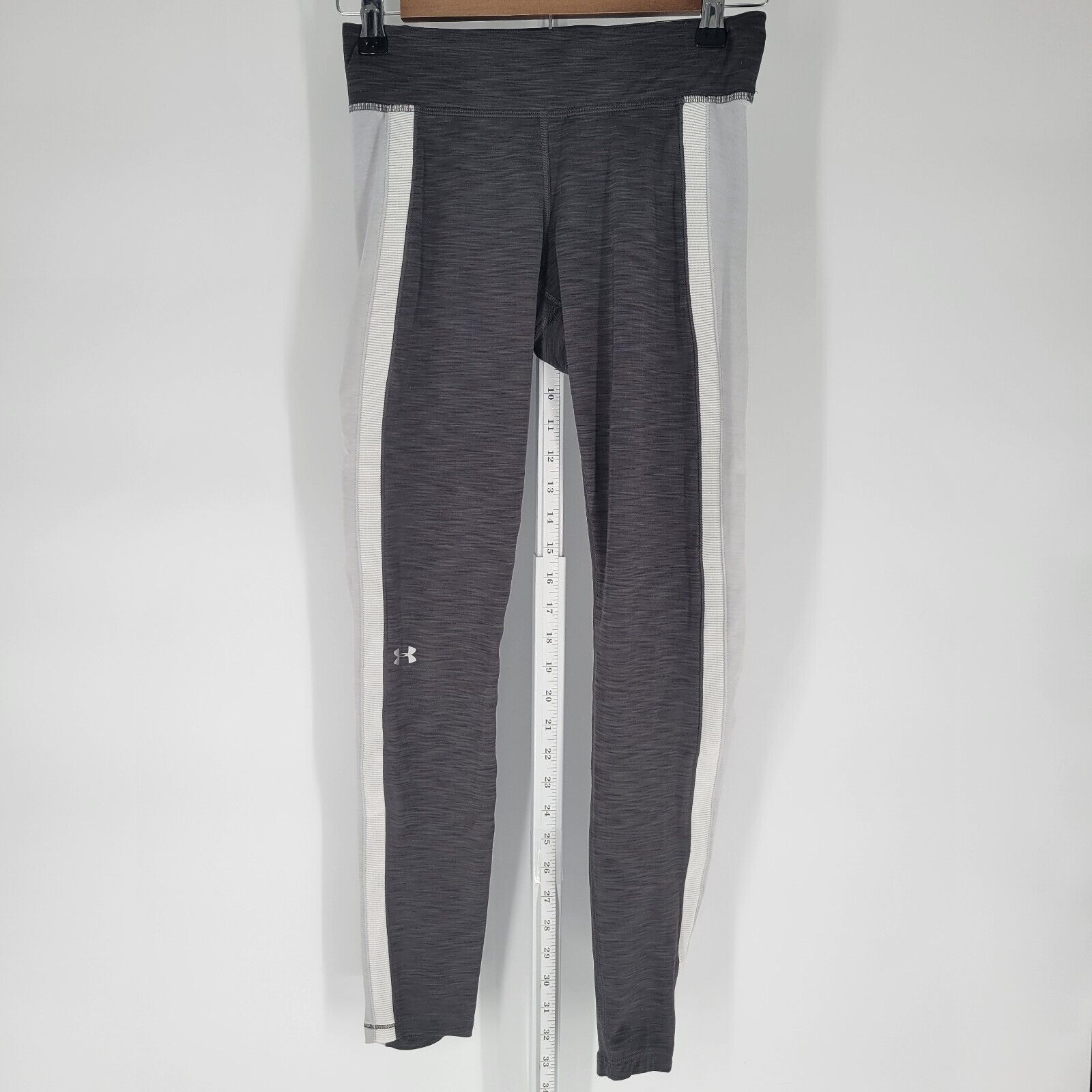 Under Armour Womens Sz M Full Length Athletic Leggings Gray White Compression