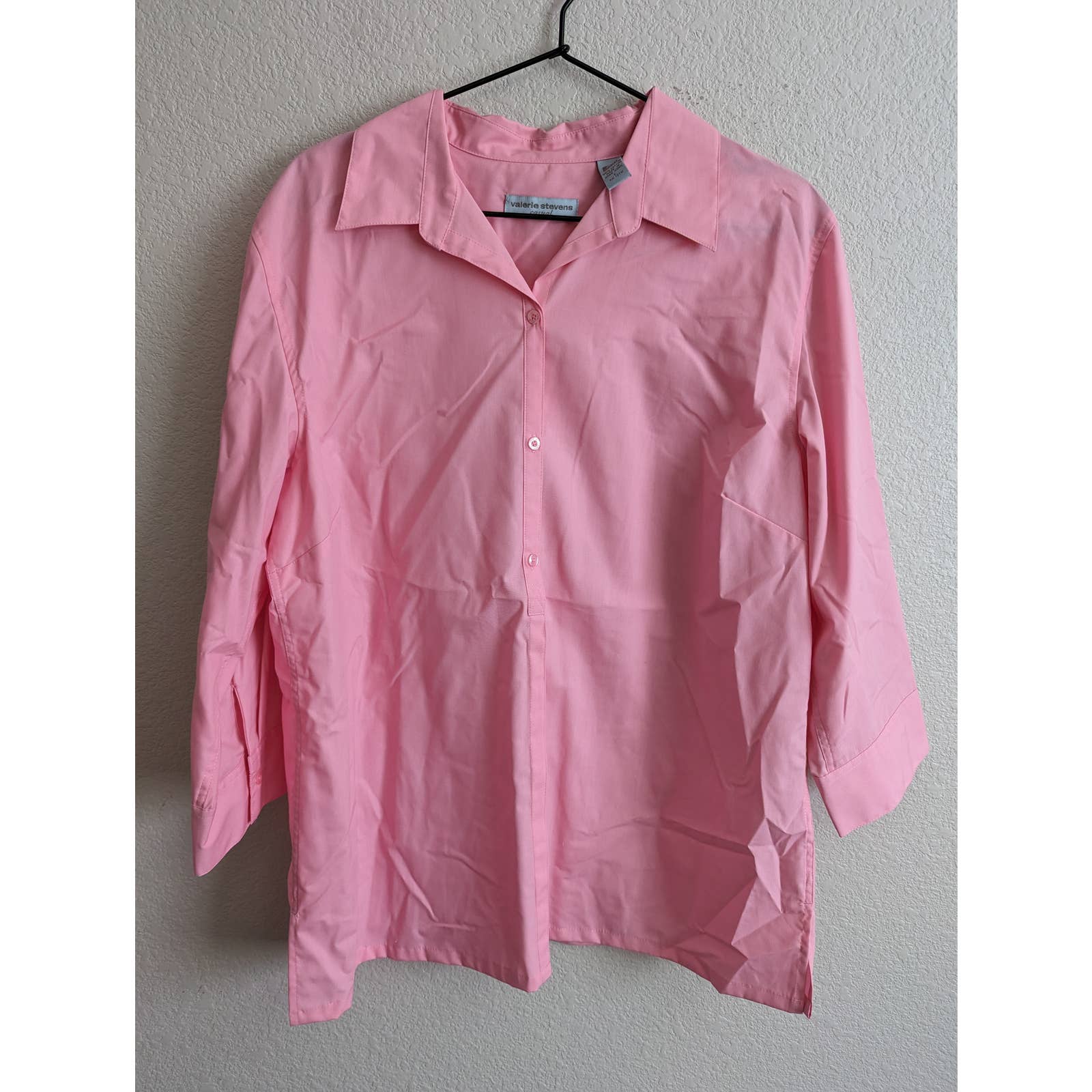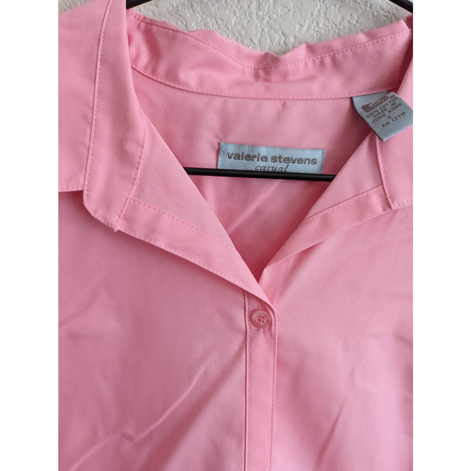 Valerie Stevens Womens Sz L 100% Cotton Button Up Shirt Light Pink Long Sleeve