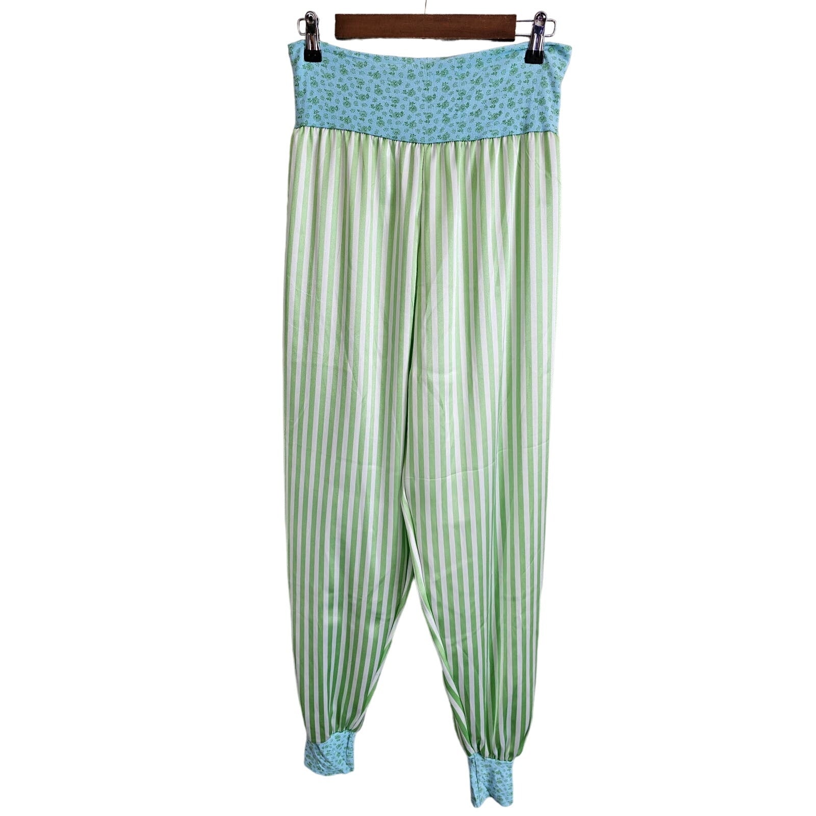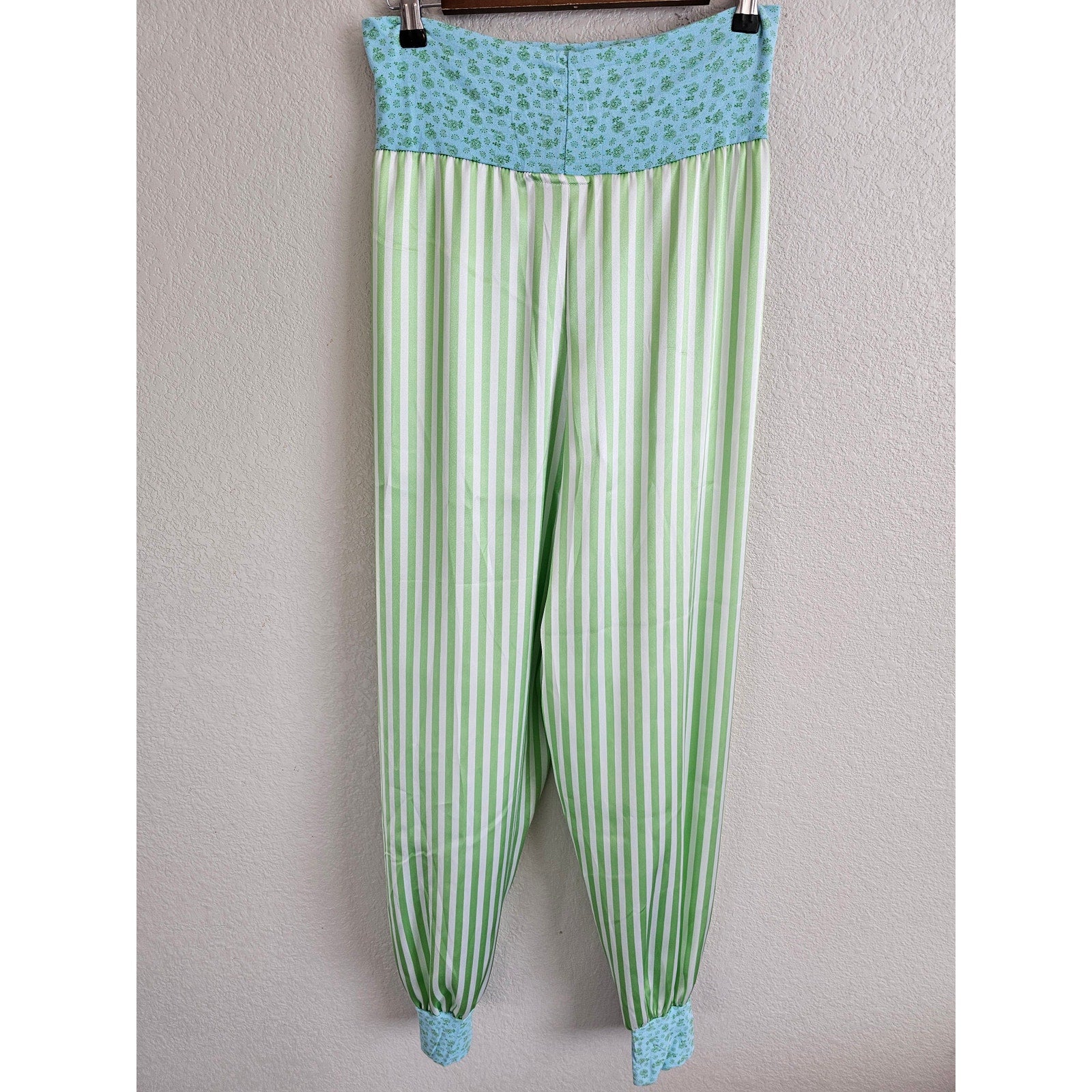 Ver'e'ne Womens Sz S Pull On Jogger Hsren Pants Satin Green White Striped Blue