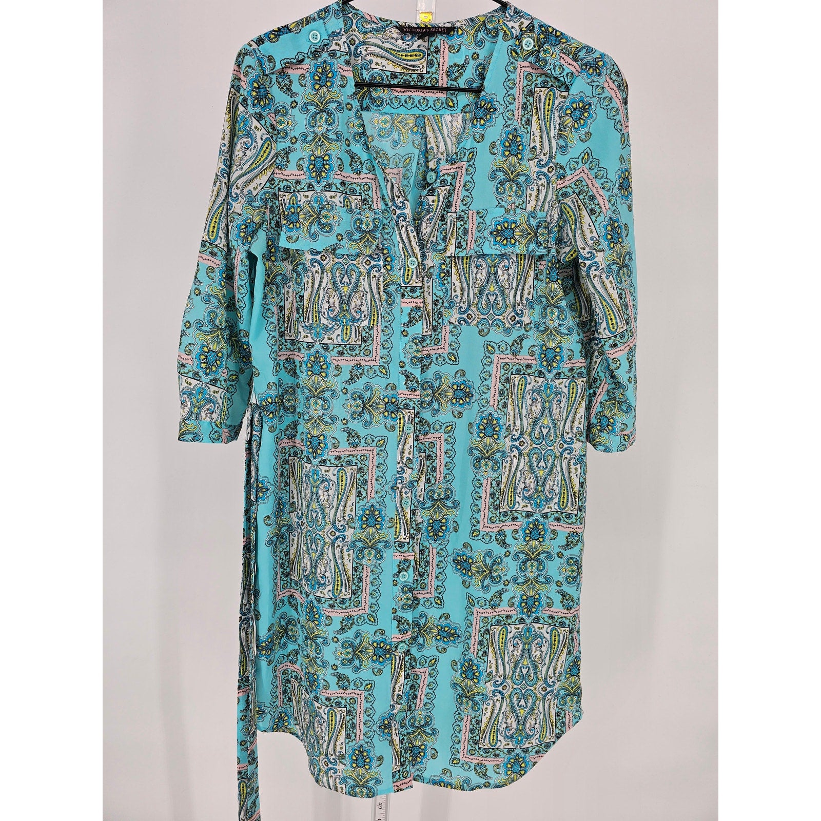 Victorias Secret Womens Sz S Belted Shirt Dress Blue Paisley Print Satin