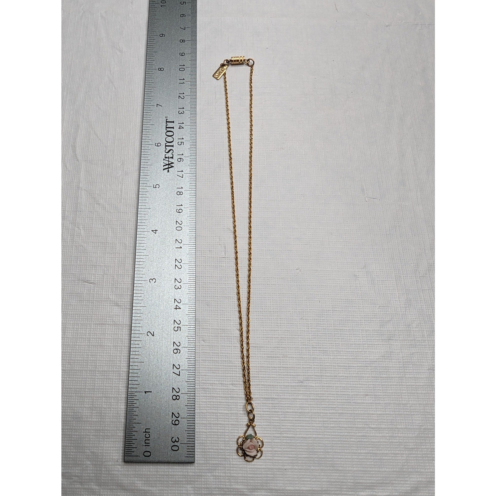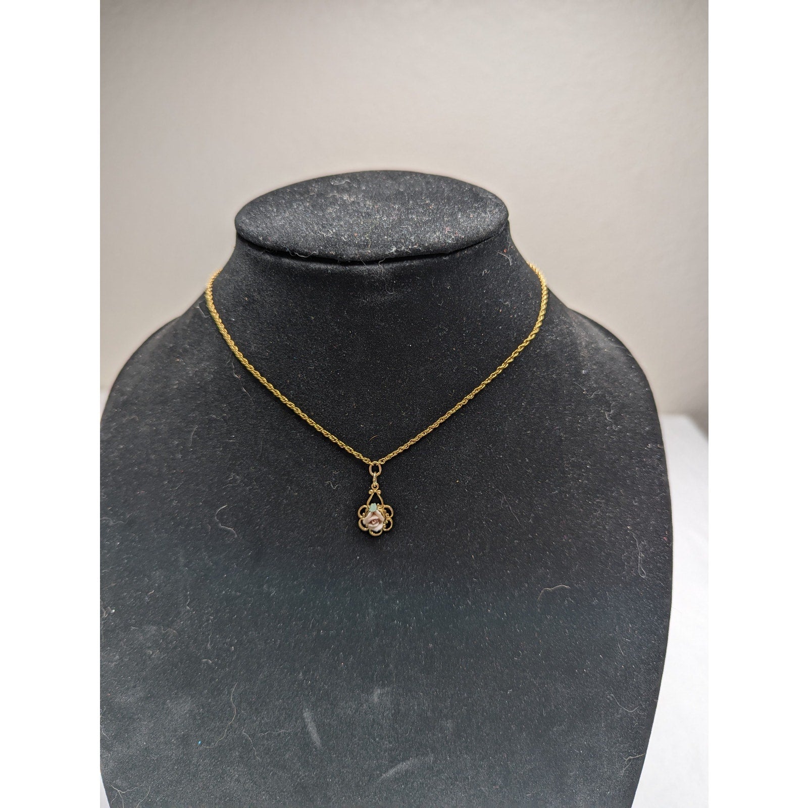 Vintage 1928 Womens Goldtone and Pink Rose Pendant Necklace 1990s