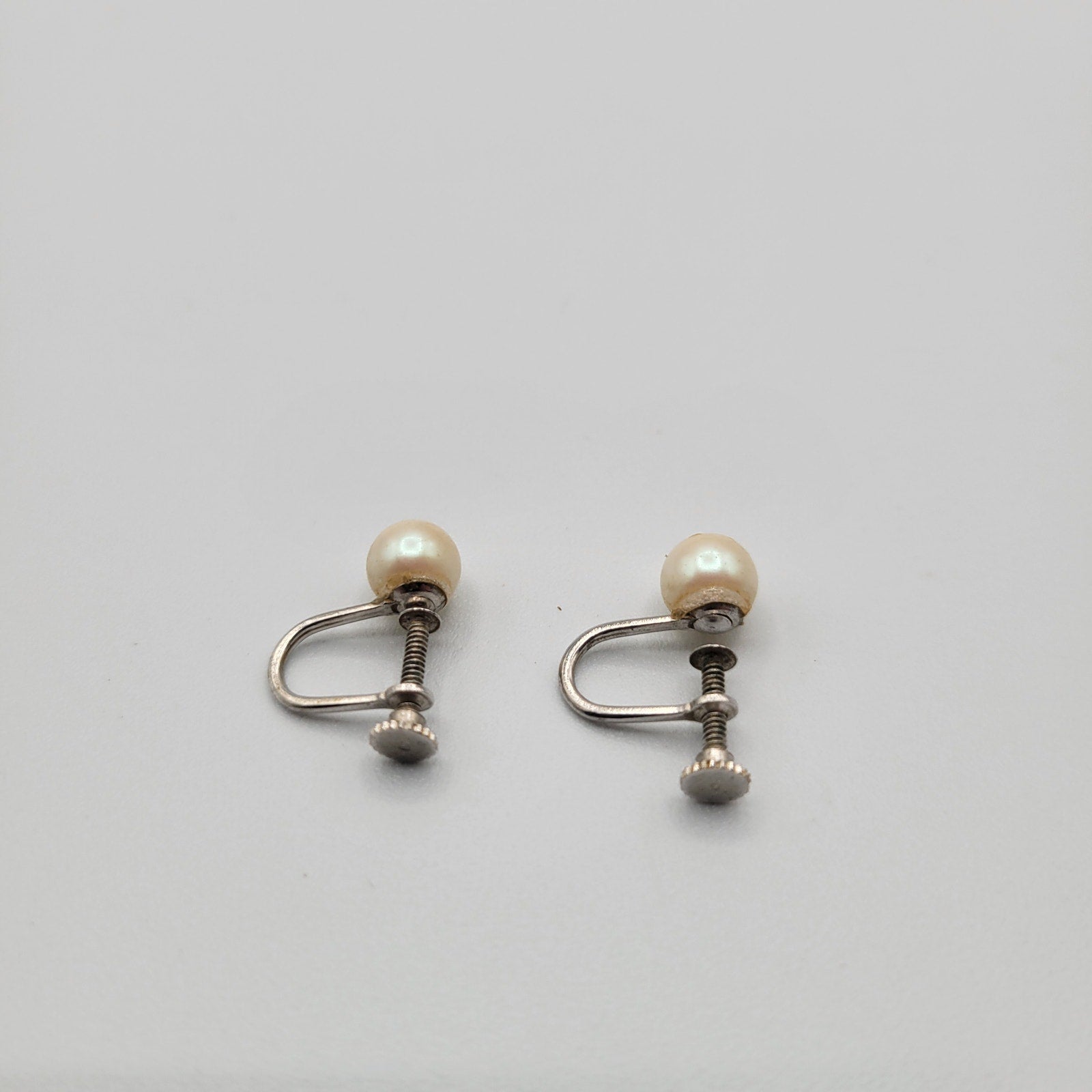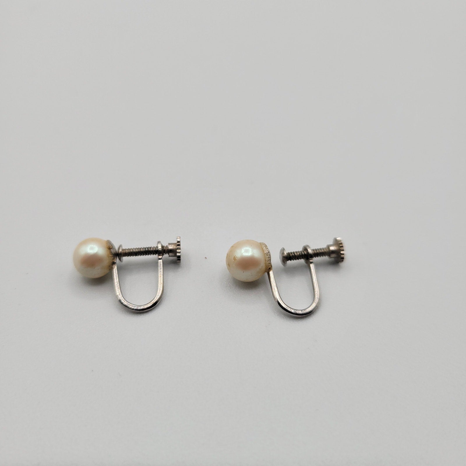 Add a retro touch to your attire with these beautiful vintage 1960s clip-on screw-on earrings. These earrings are an absolute classic and feature round pearls that are studded to perfection. They are a great addition to any collection and are perfect for those who love vintage accessories. The earrings are versatile and can be worn with formal or casual attire. They are perfect for those who want to add a touch of elegance to their outfit. The earrings are in excellent condition and have been well-maintained over the years. The clips and screws are in perfect working condition, and the pearls are firmly fixed to the base. These earrings would make an excellent addition to any collection and are a great way to show off your love for vintage jewelry.