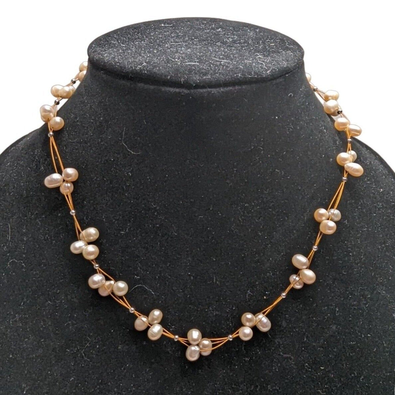 Vintage 1960s Faux Champagne Pearl Cluster Necklace Dainty Estate Find