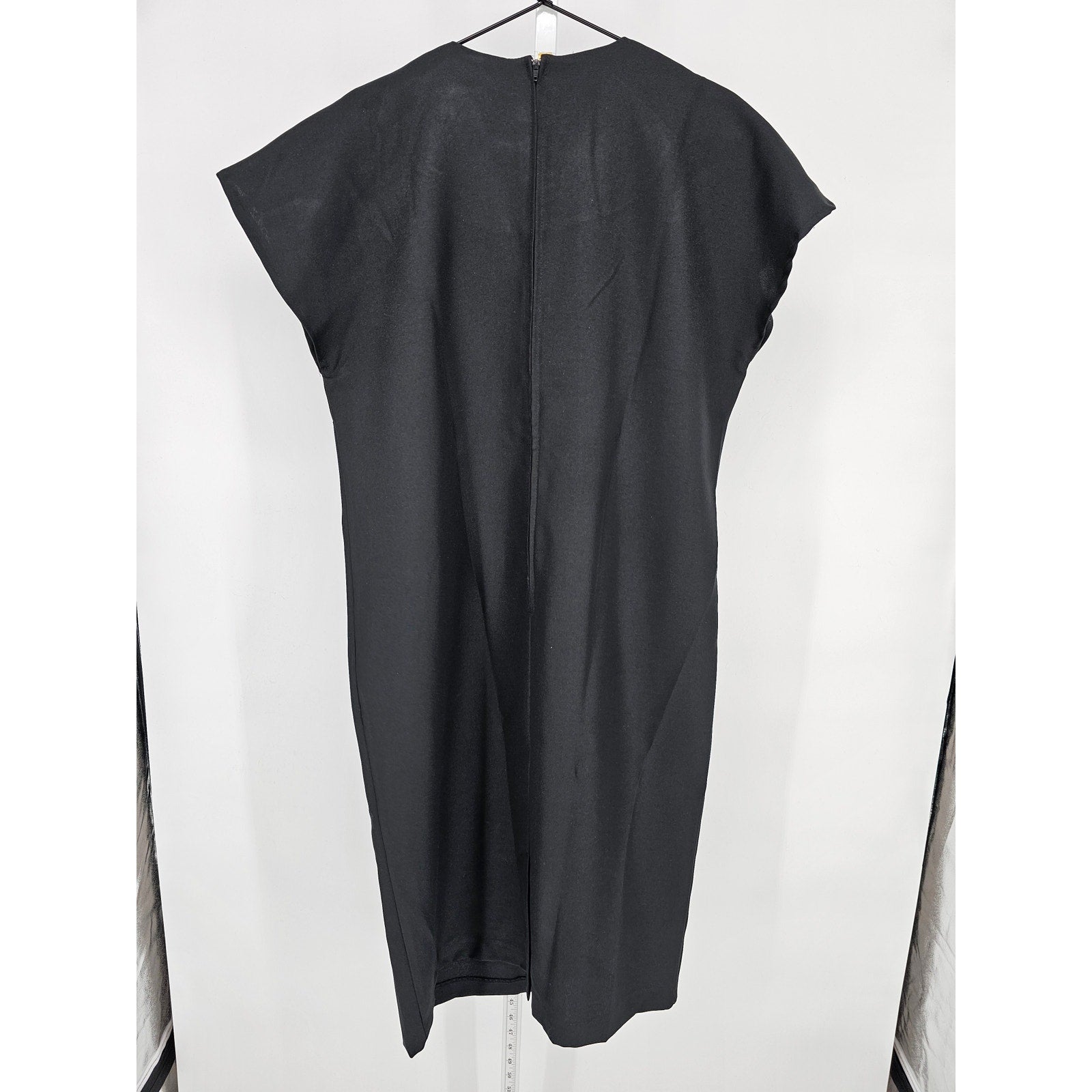 Vintage 1960s Tina Barrie Womens Sz 12 Knee Length Sheath Dress Solid Black