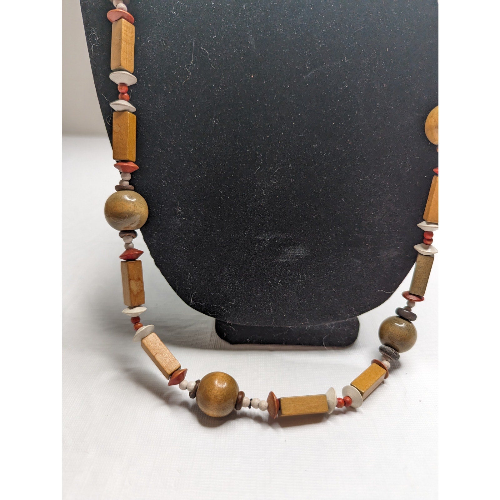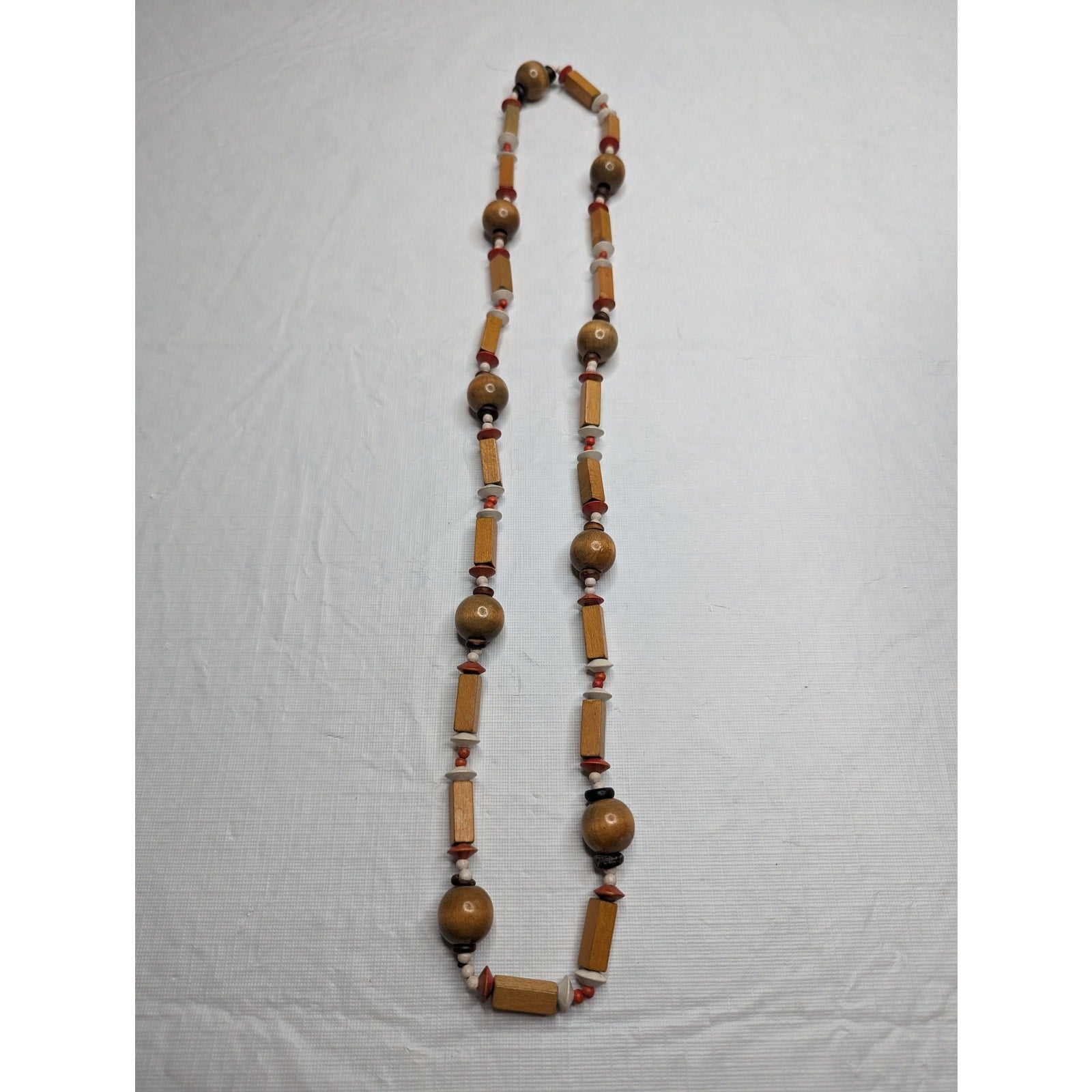 Vintage 1960s Wooden Bead Single Strand Geometric Necklace Brown