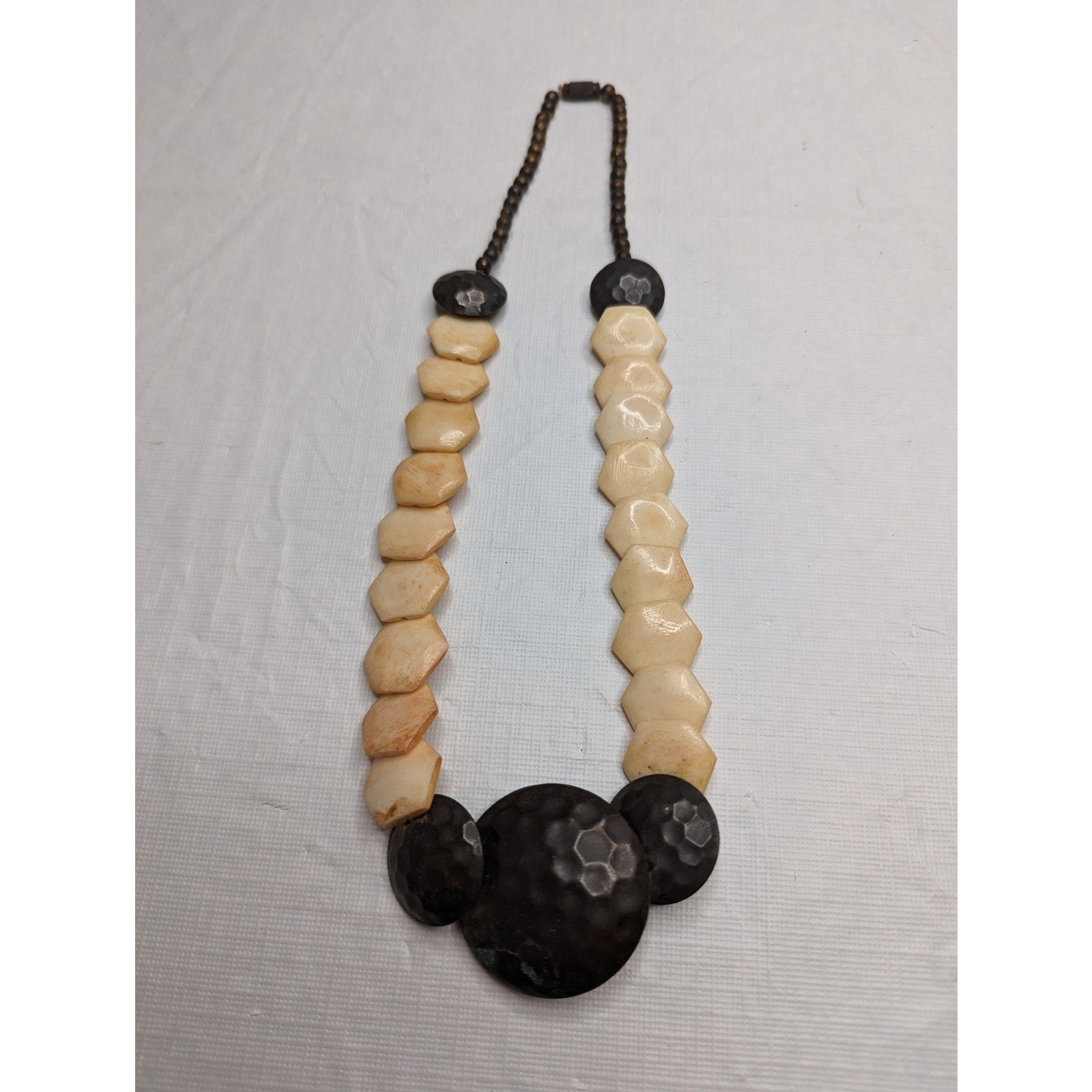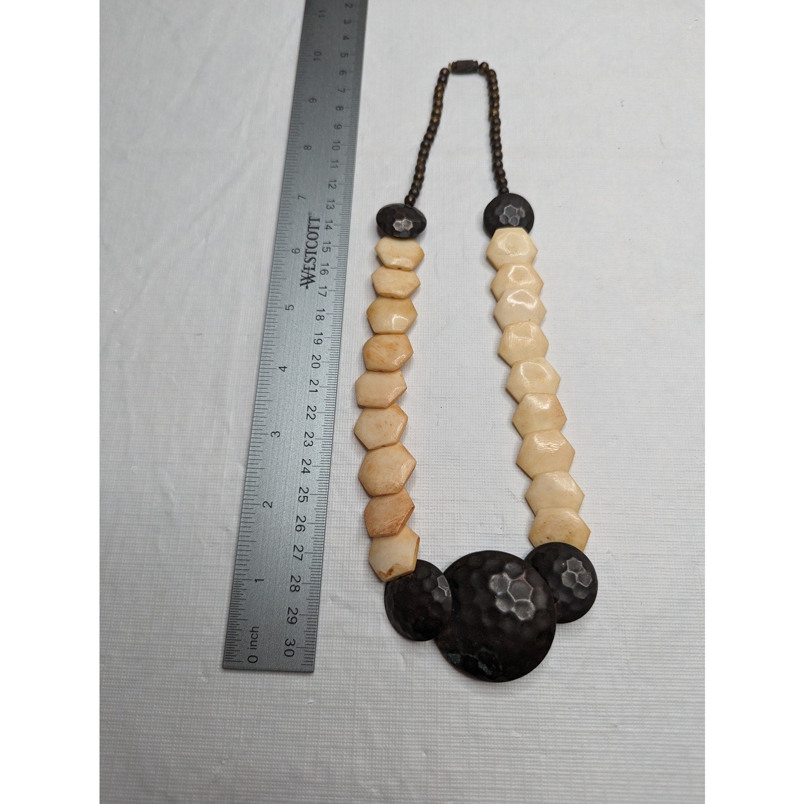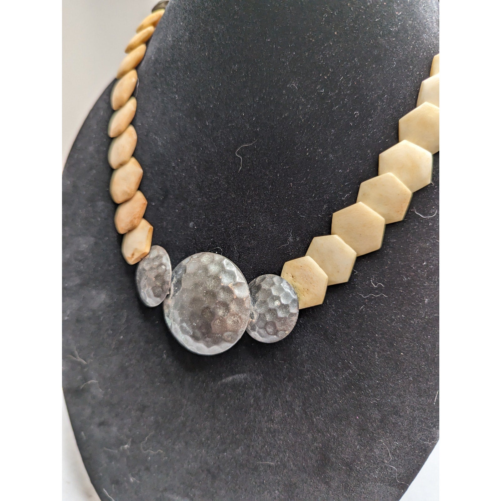 Vintage 1970s Geometric Mod Single Strand Necklace Hexagon Ivory Tone