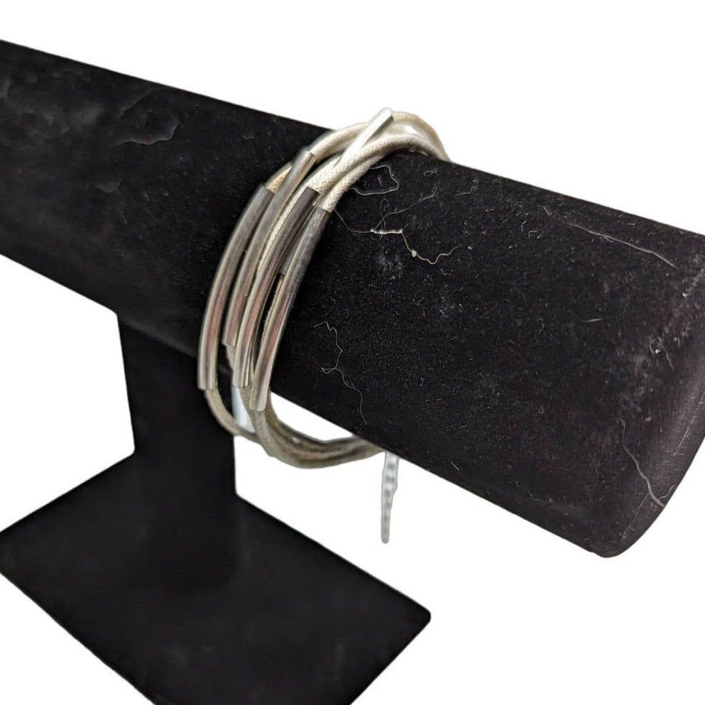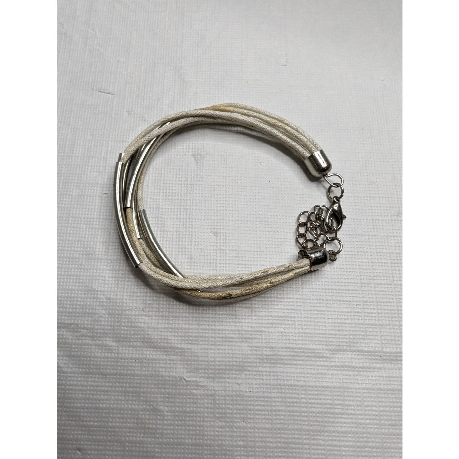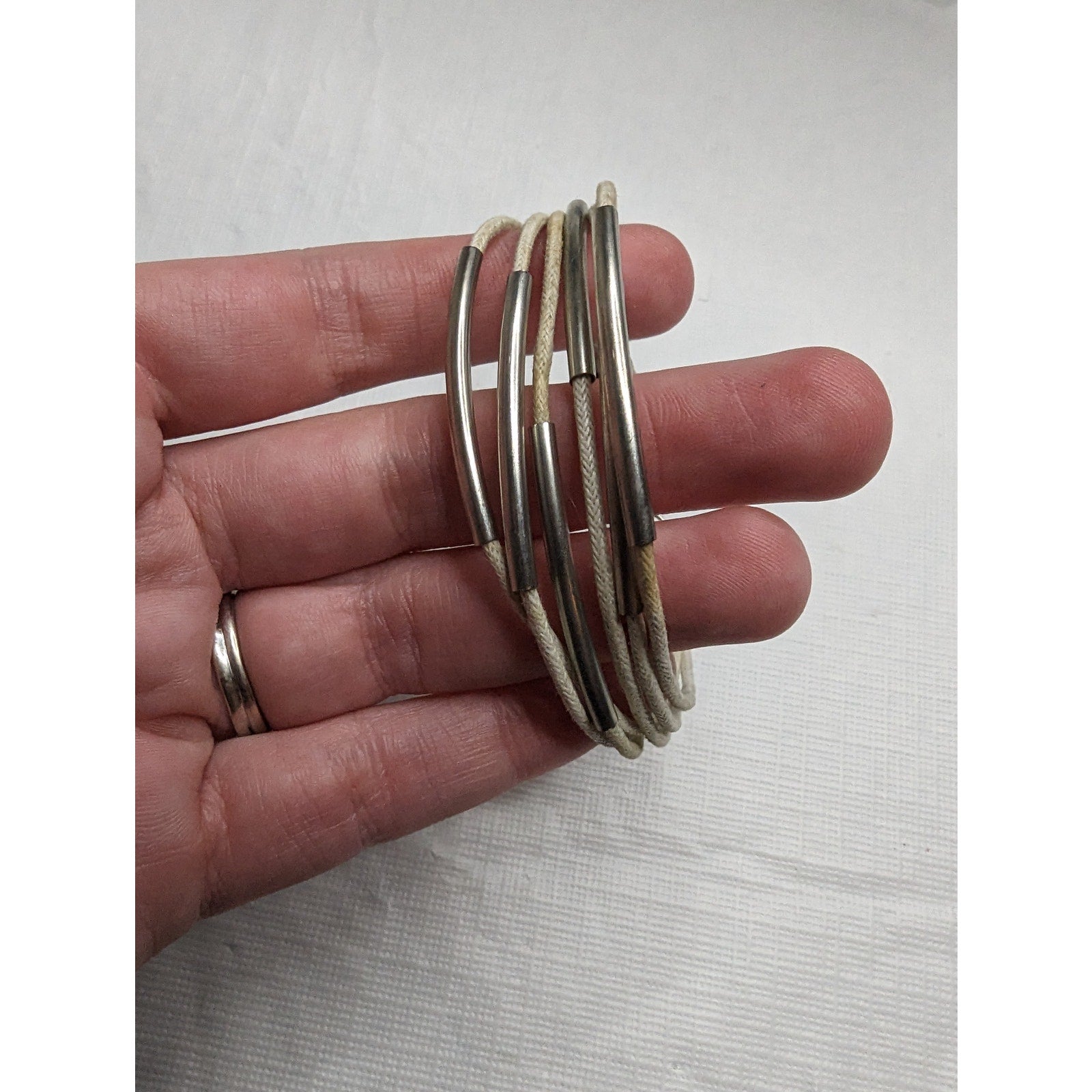 Vintage 1970s Rope Style Multi Strand Cream Bracelet Silver Tone