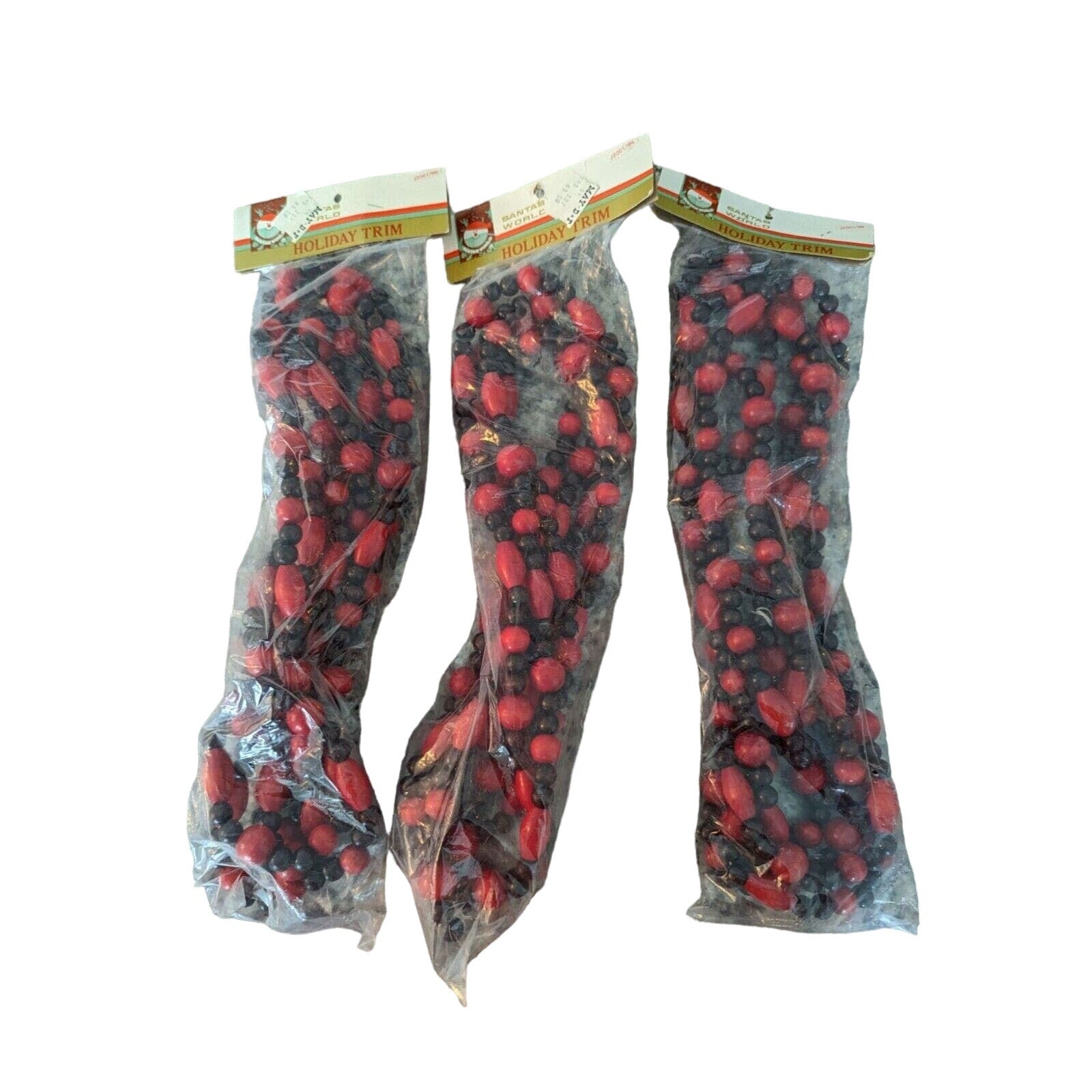 Vintage 1970s Santas World Holiday Trim Beaded Garland Lot of 3 Red Black