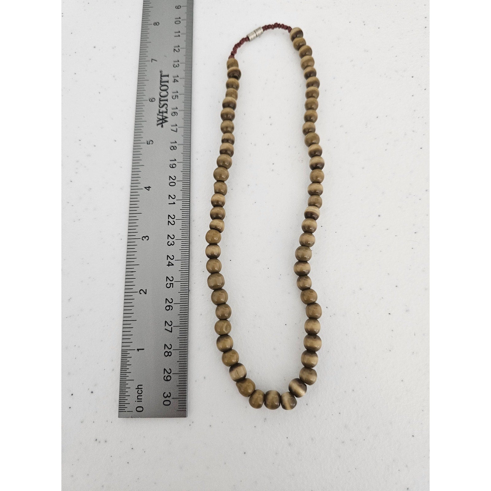 Vintage 1970s Single Strand Round Beaded Necklace Tigers Eye Style Brown
