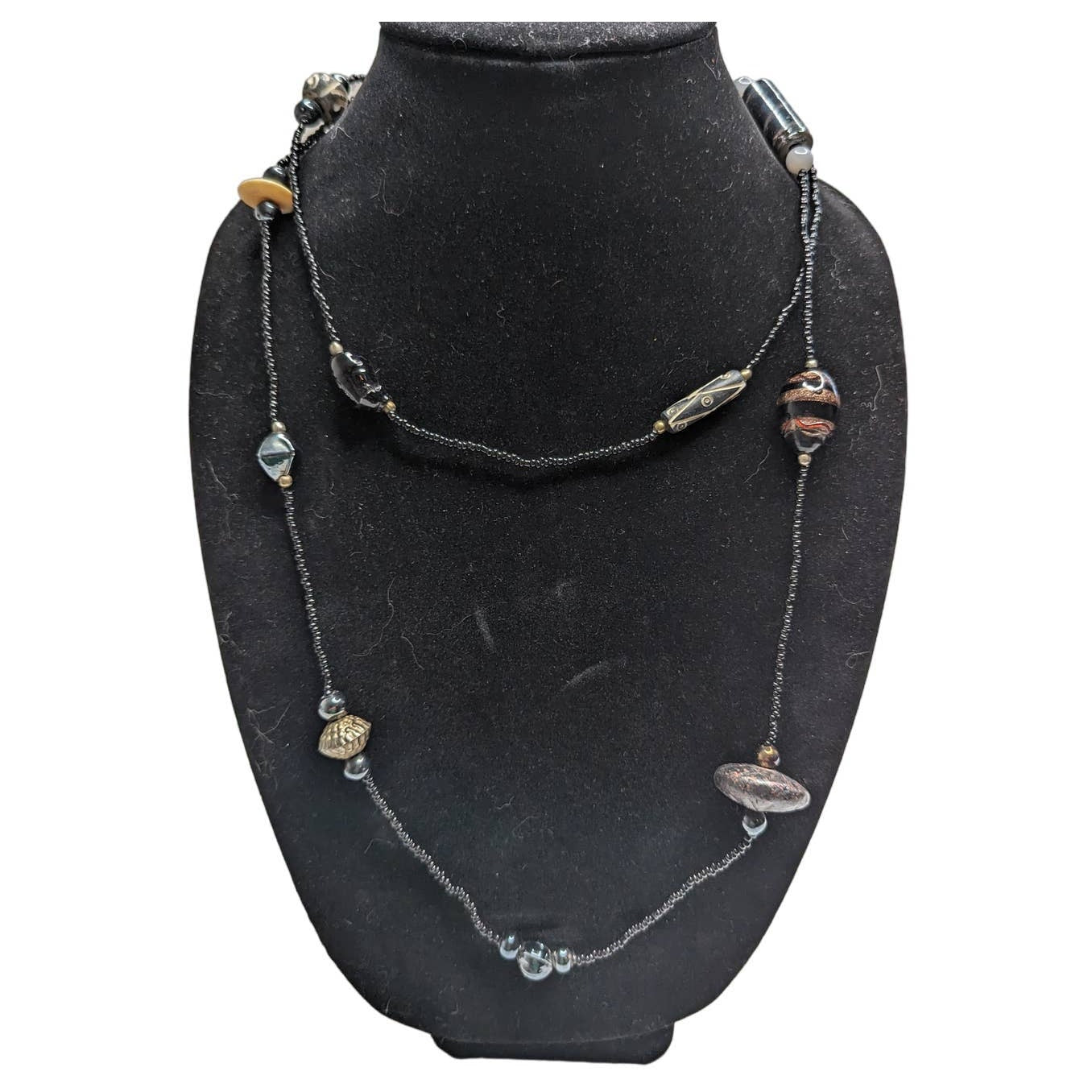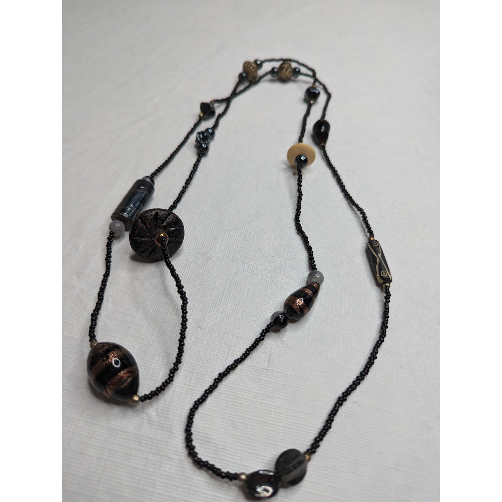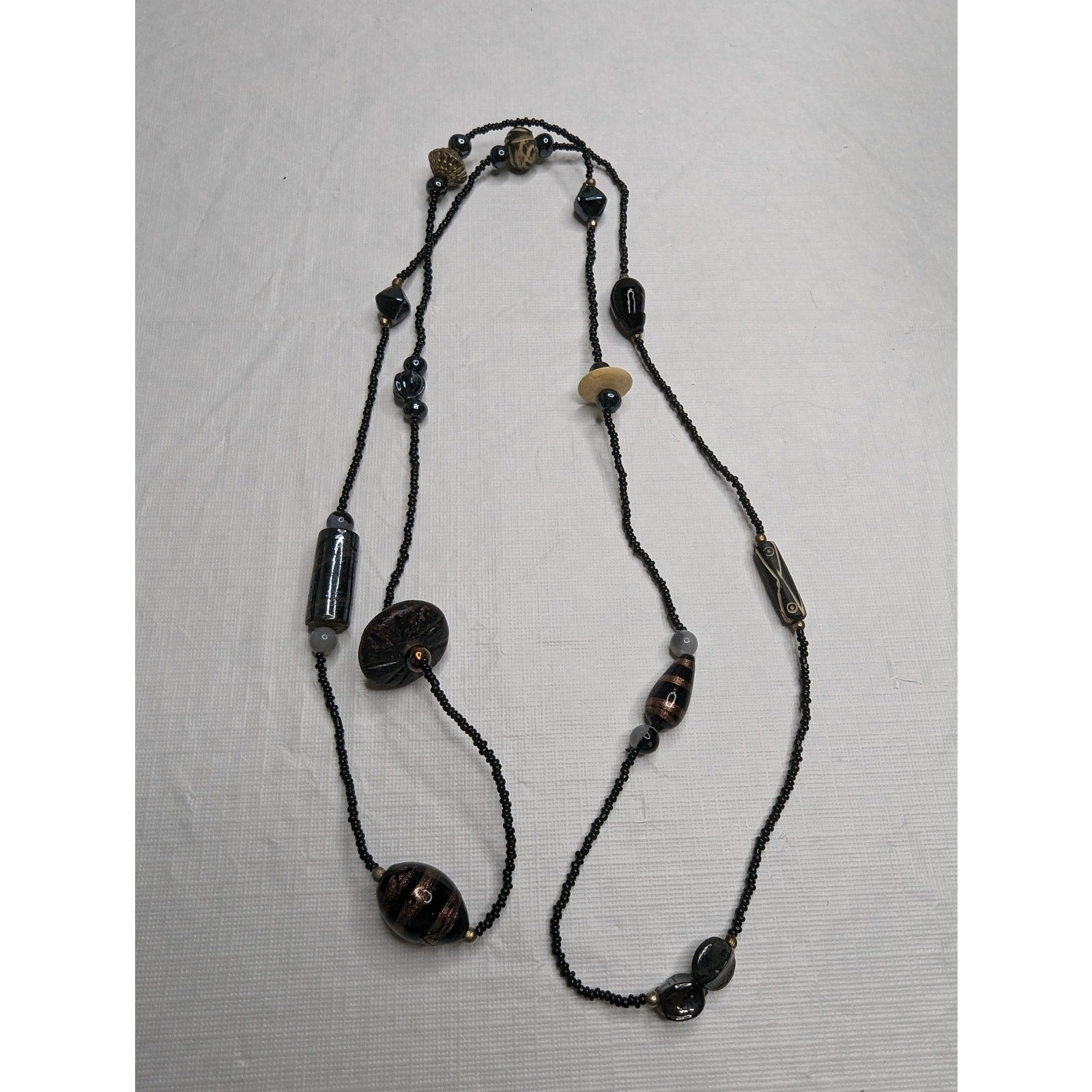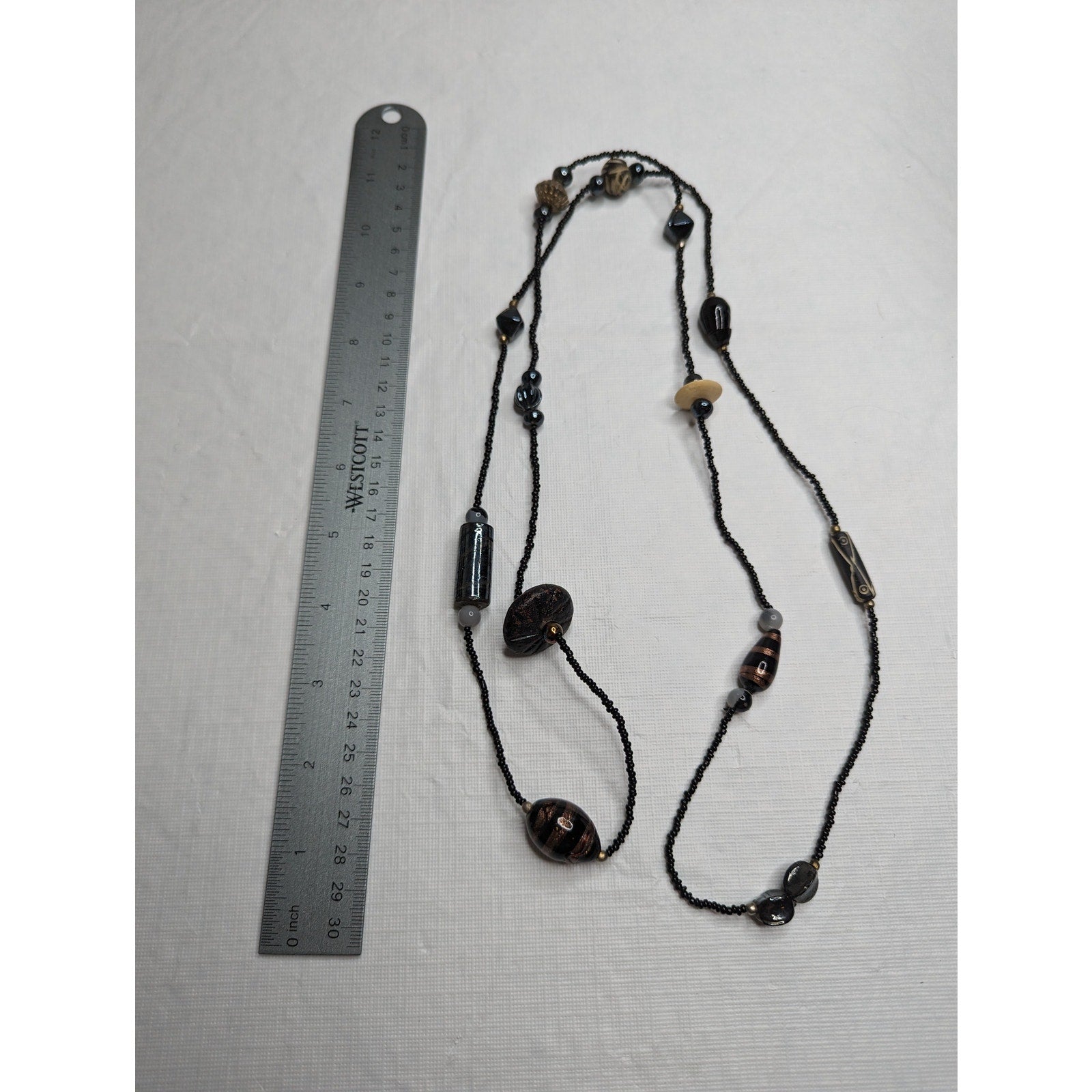 Vintage 1970s Womens Seed Bead Glass Beaded Single Strand Necklace Black