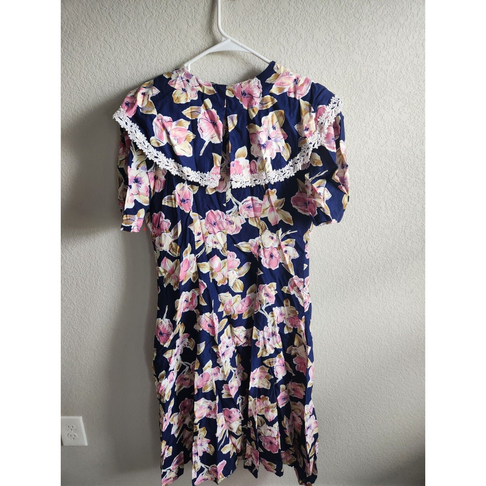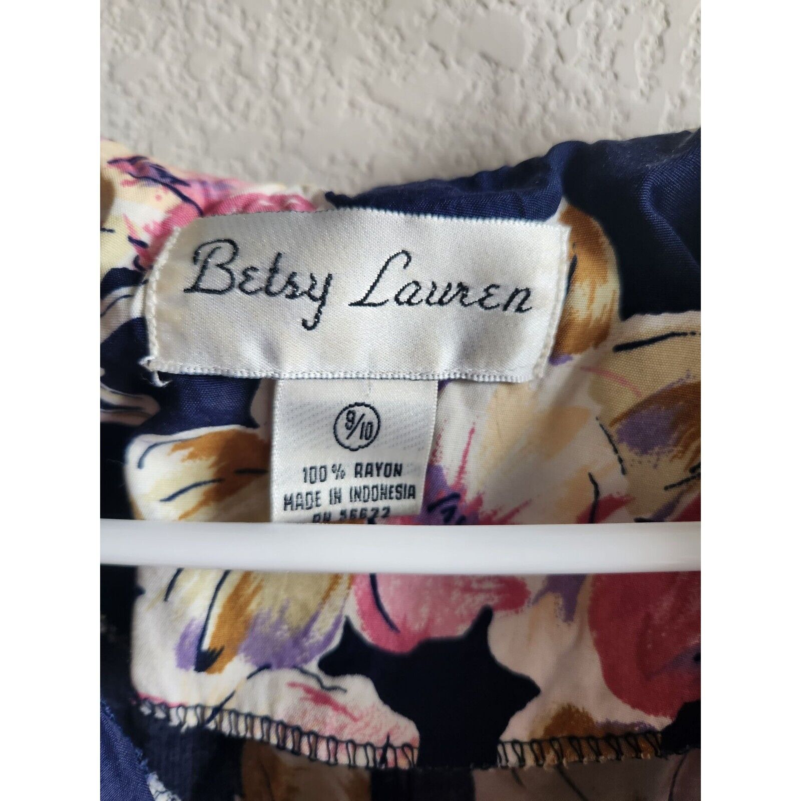 Vintage 1980s Betsey Lauren Womens Sz 10 Midi Dress Bold Blue Floral Smocked