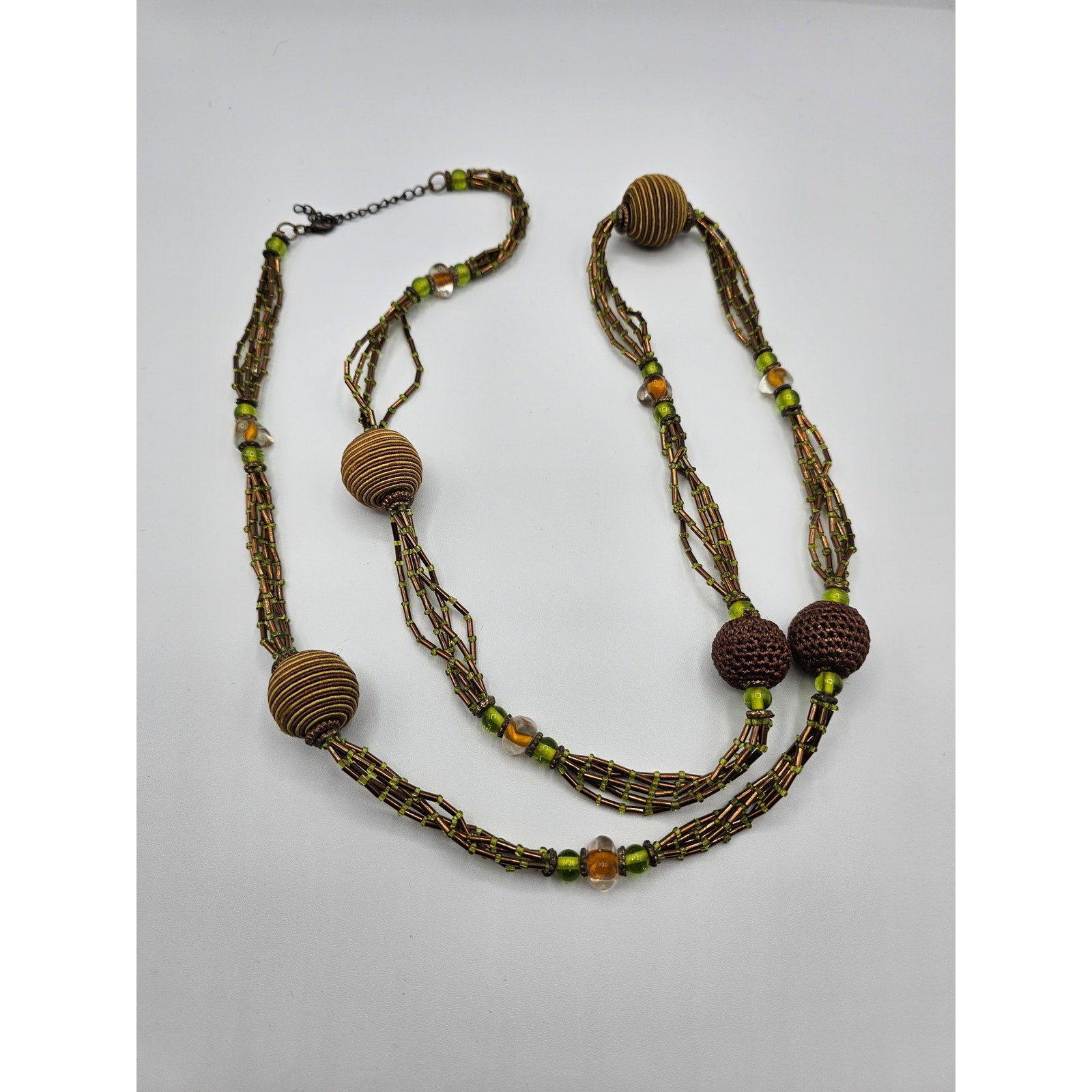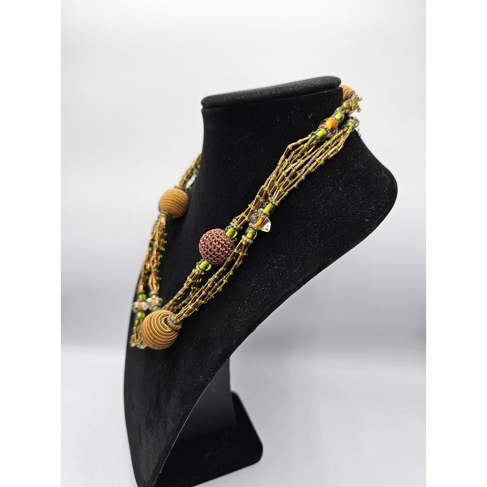 Vintage 1980s Boho Style Multi Strand Beaded Necklace Art to Wear Gold