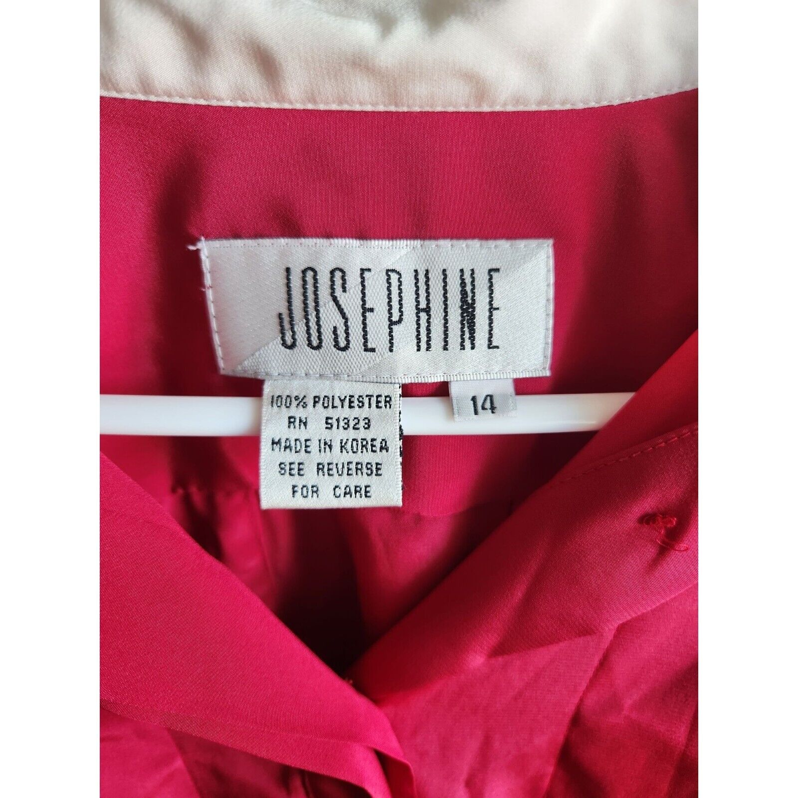 Vintage 1980s Josephine Womens Sz 14 Long Sleeve Button Down Blouse Hot Pink