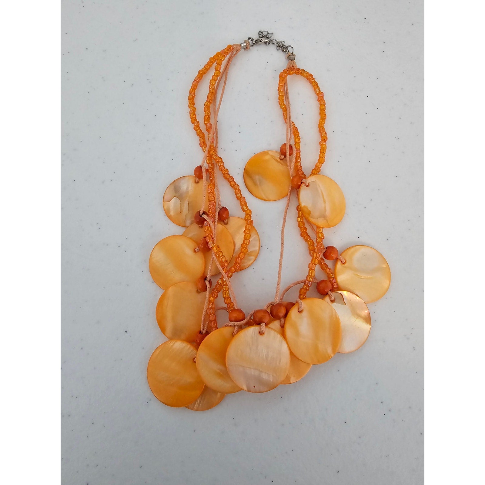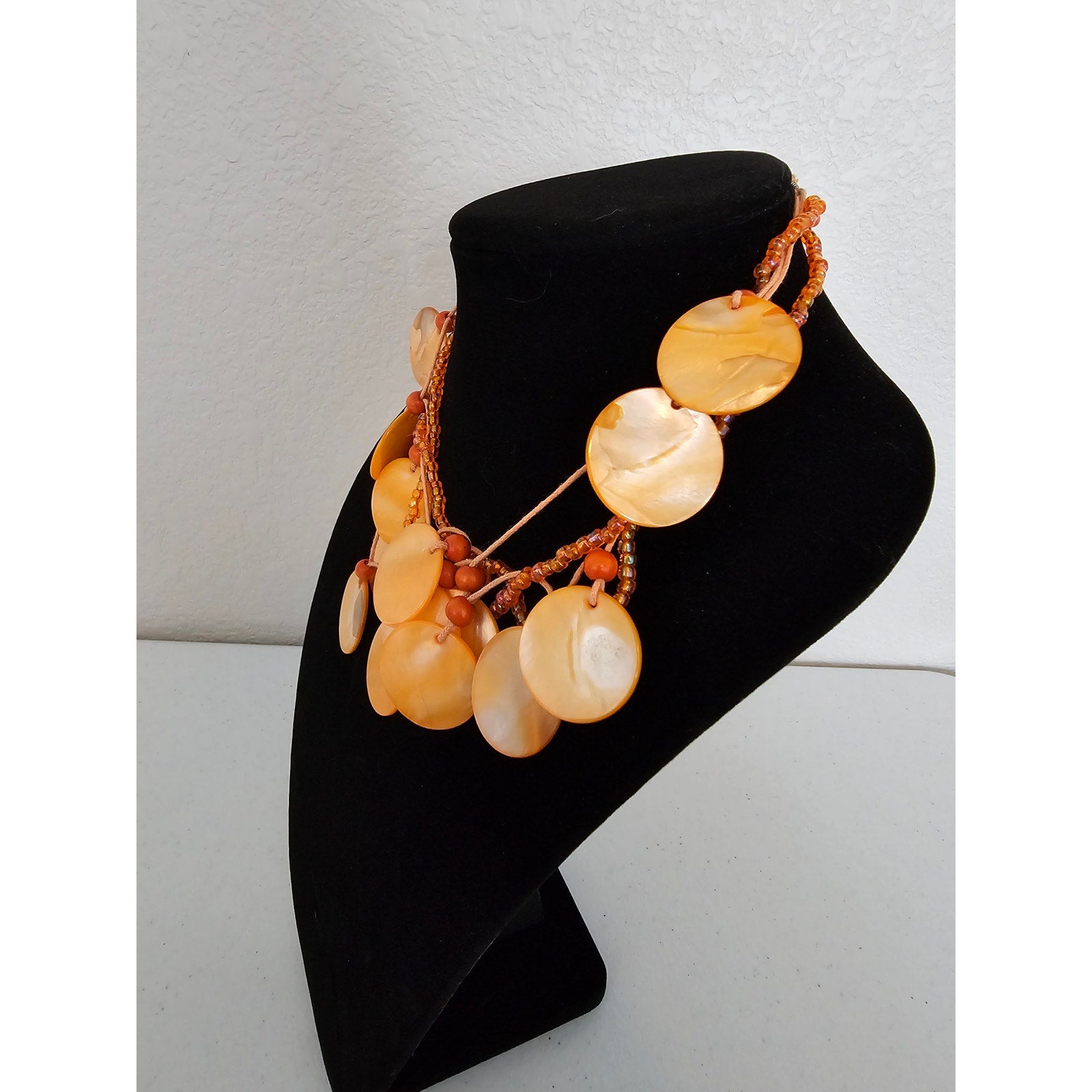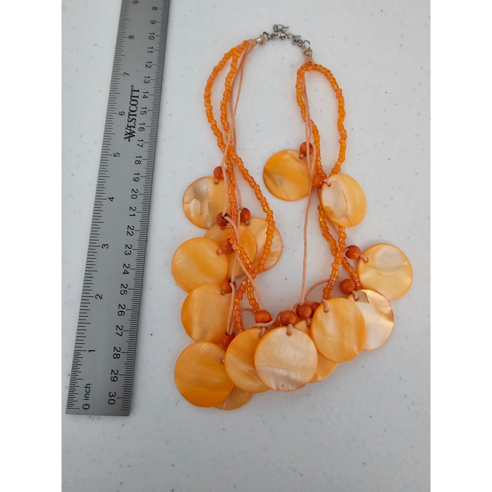 Vintage 1980s Pastel Orange Layered Disk Beaded Necklace Mother of Pearl