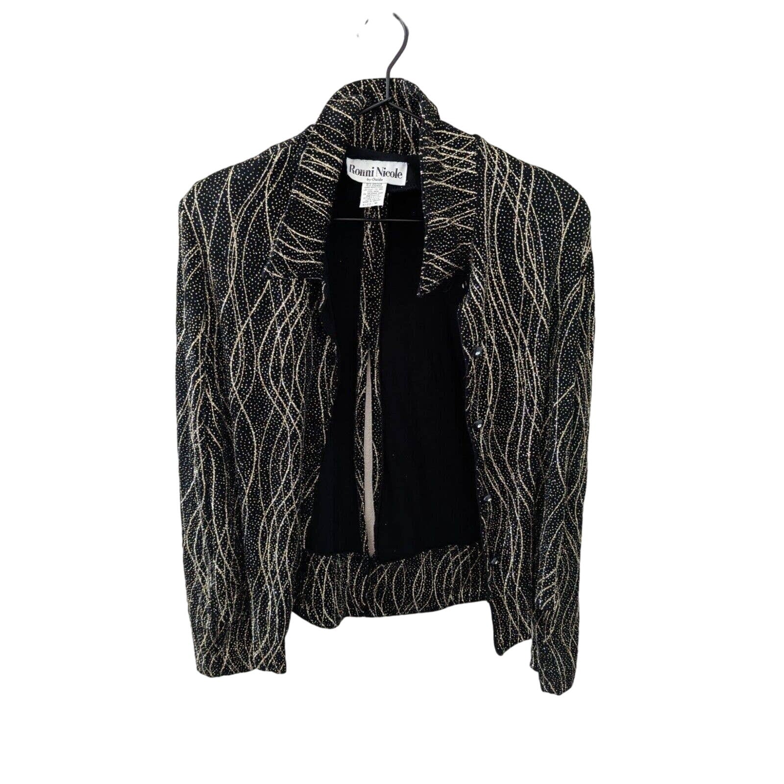 Vintage 1980s Ronni Nicole Womens Sz 10 Formal Blazer Jacket Black Gold Glitter