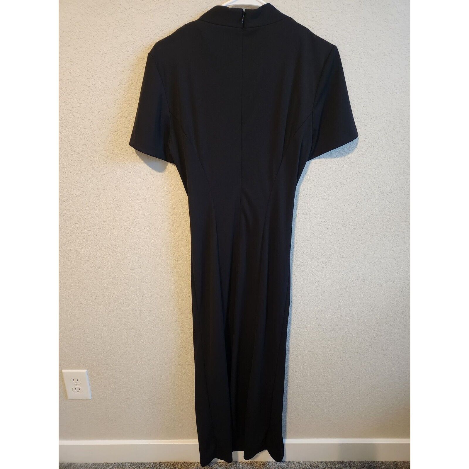 Vintage 1980s Scarlett Womens Sz 8 Maxi Dress Solid Black Slinky Belted