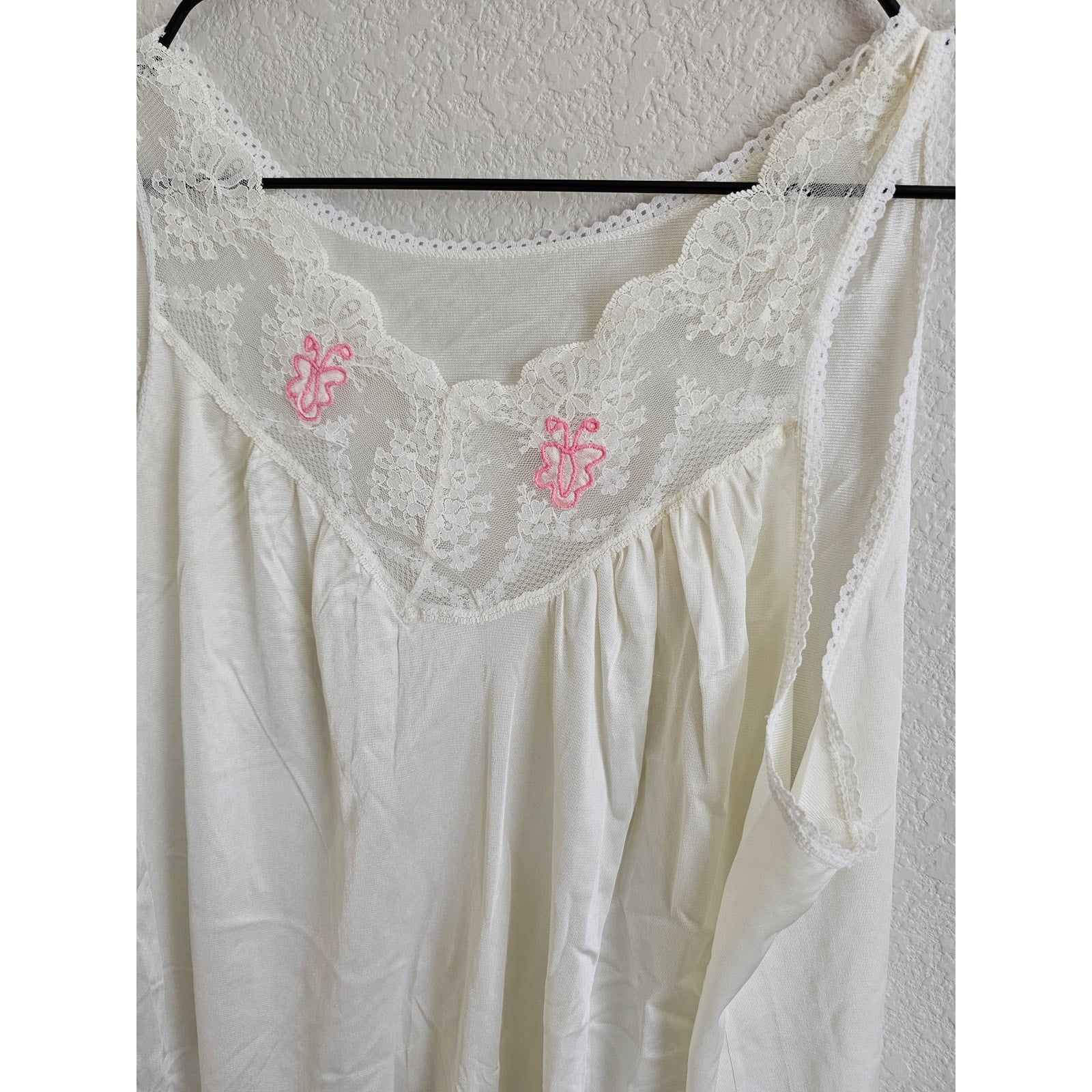 Vintage 1980s Womens Sz M Midi Length Nightgown Nylon White Pink Lace