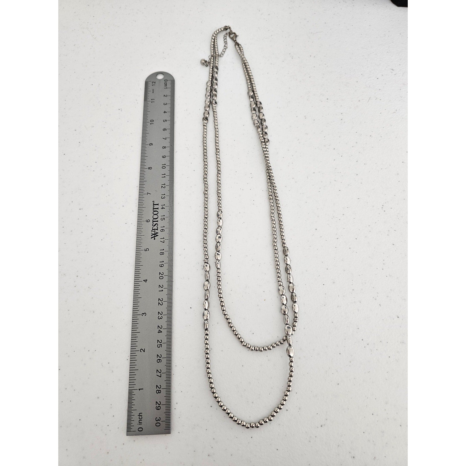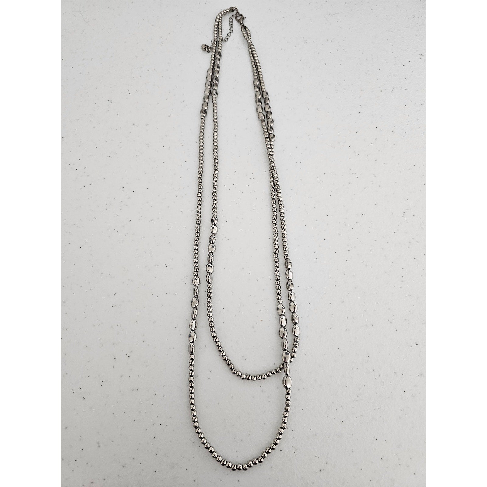 Vintage 1990s 2 Strand Beaded Necklace Metal Silver Tone Beads
