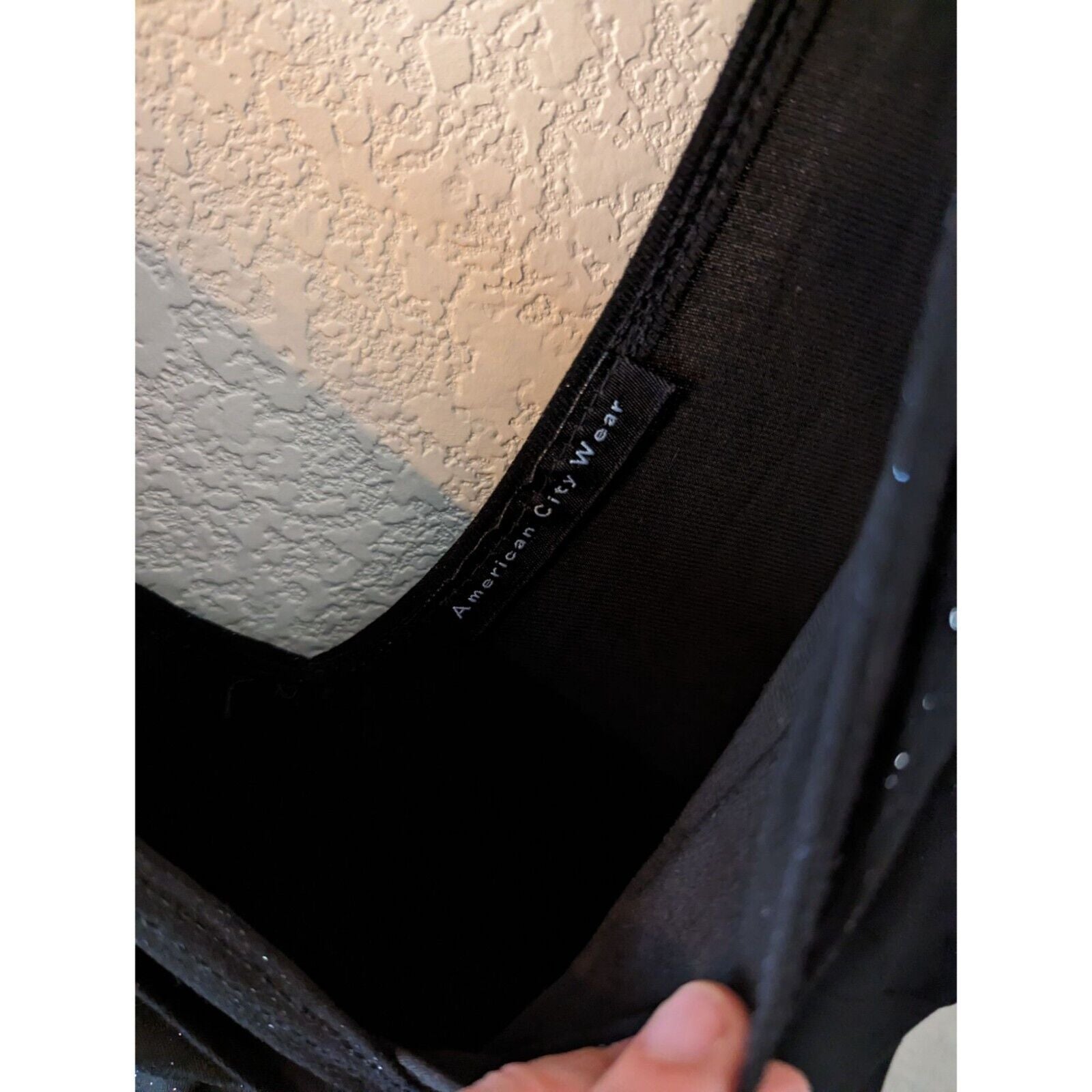 Vintage 1990s American City Wear Womens Sz L Midi Dress Black Silver Glitter
