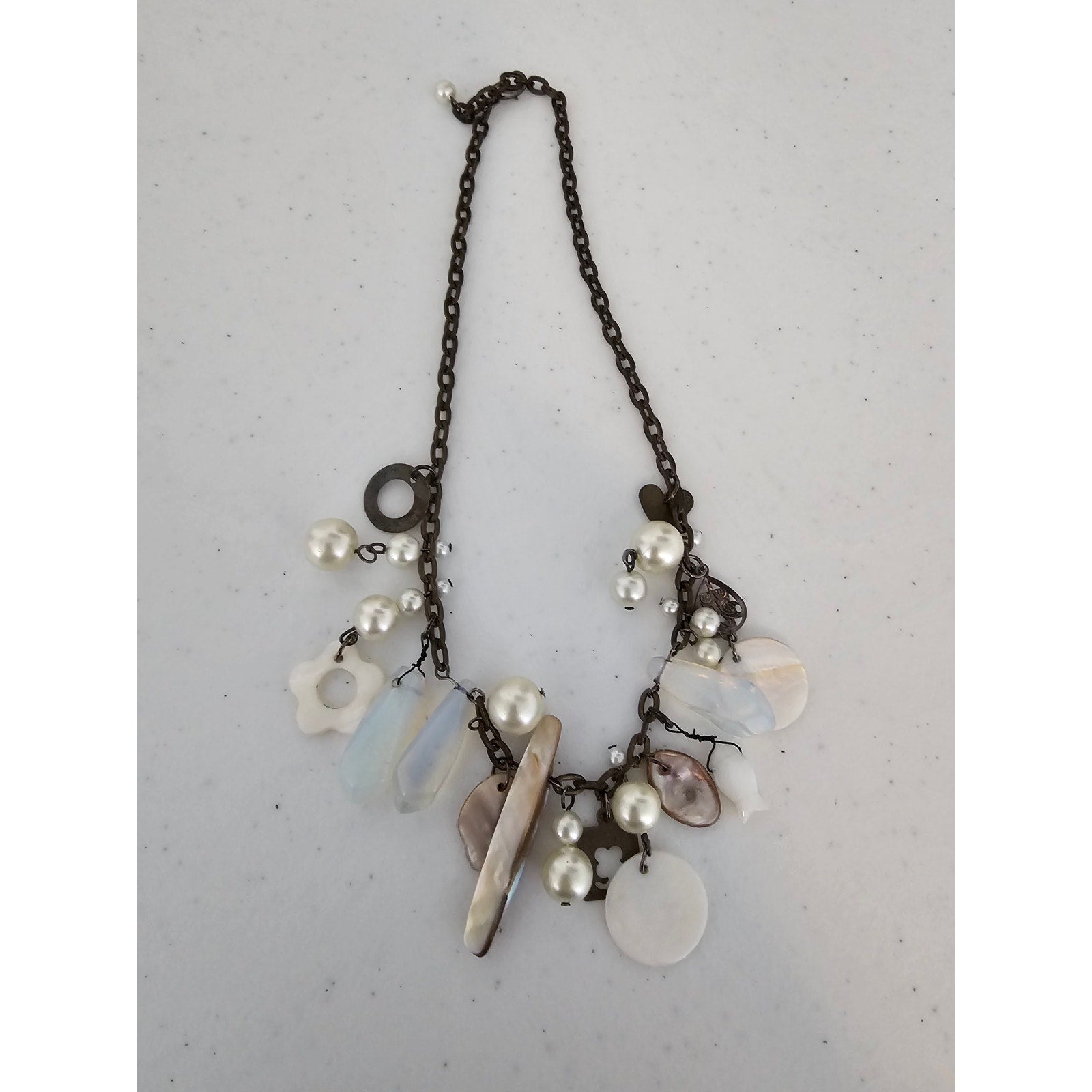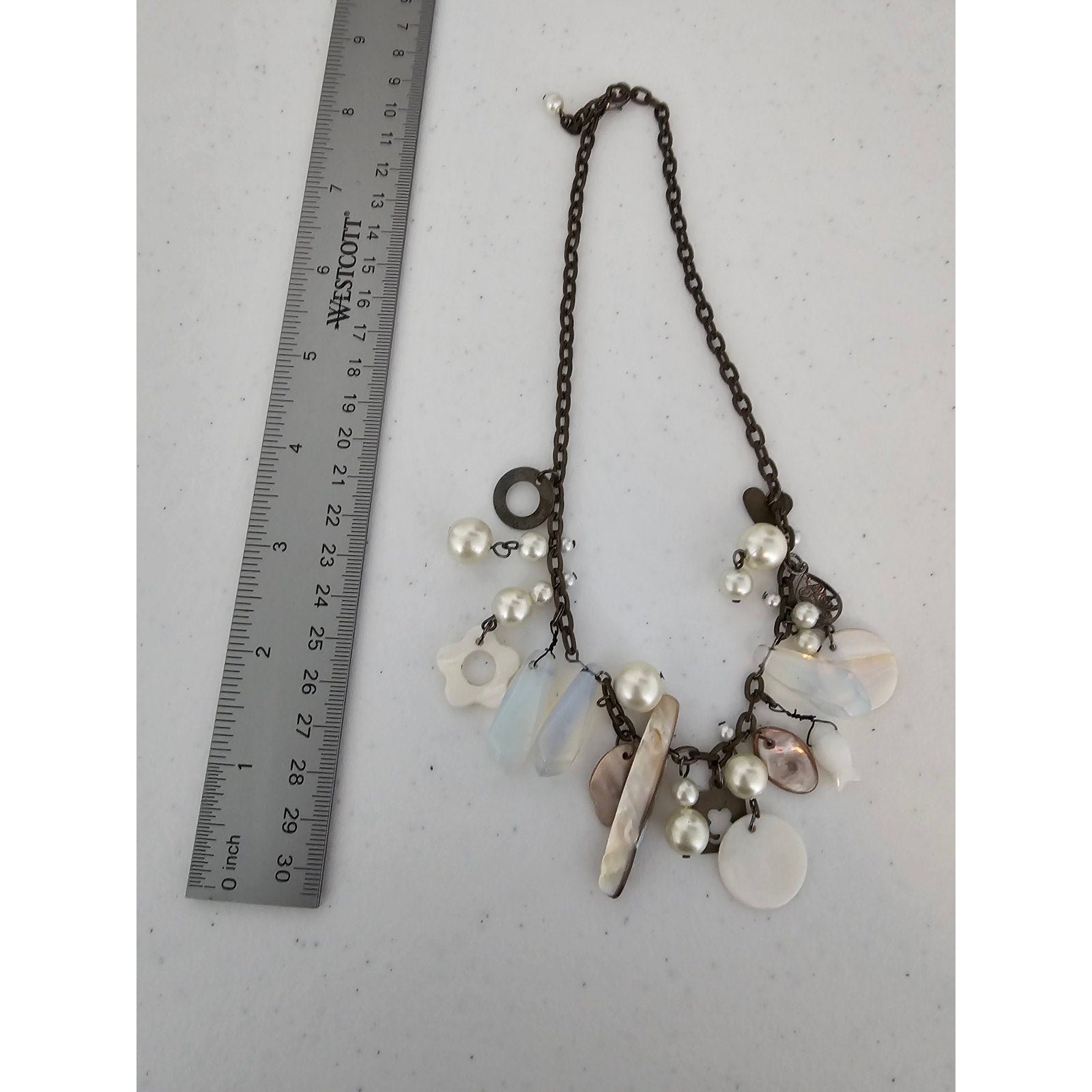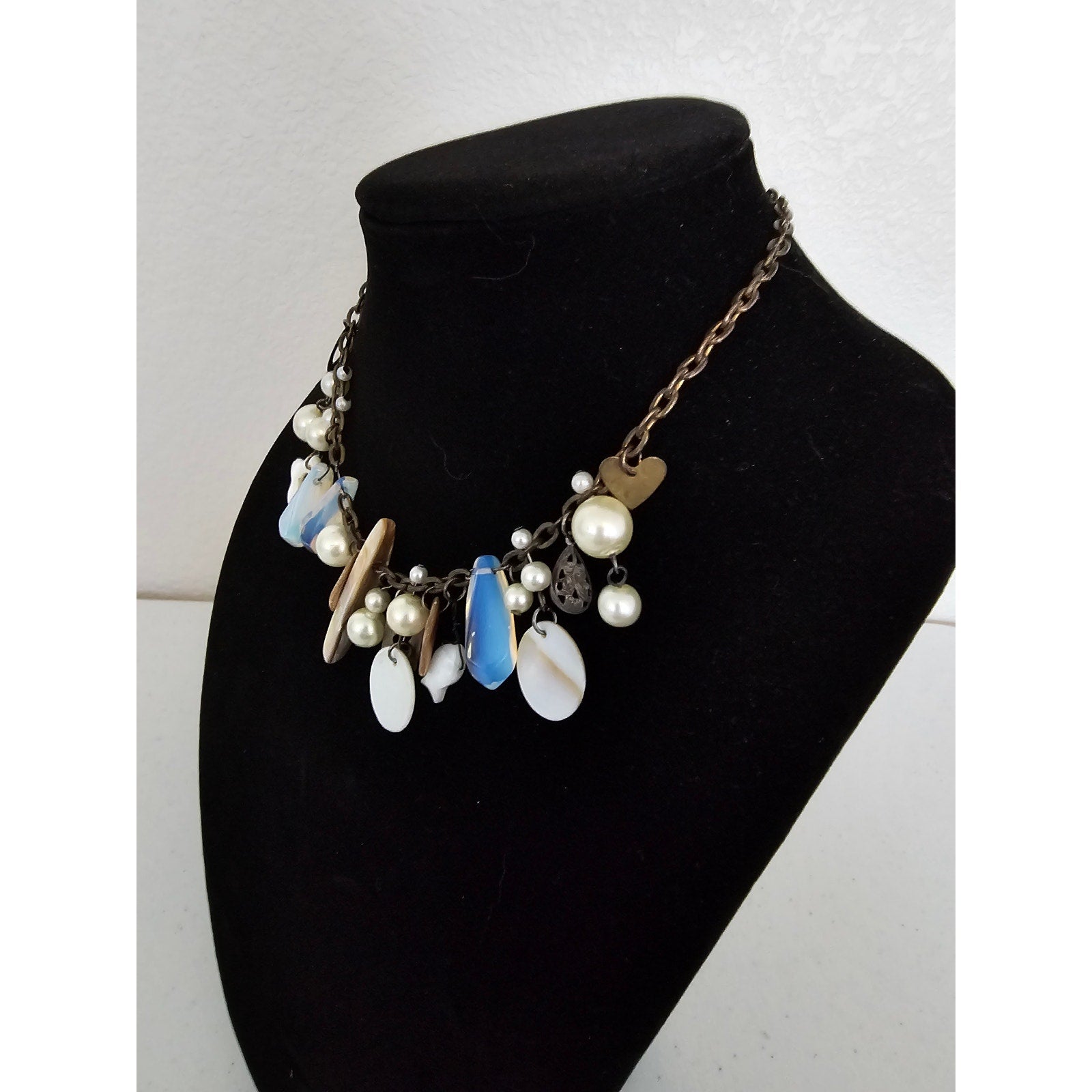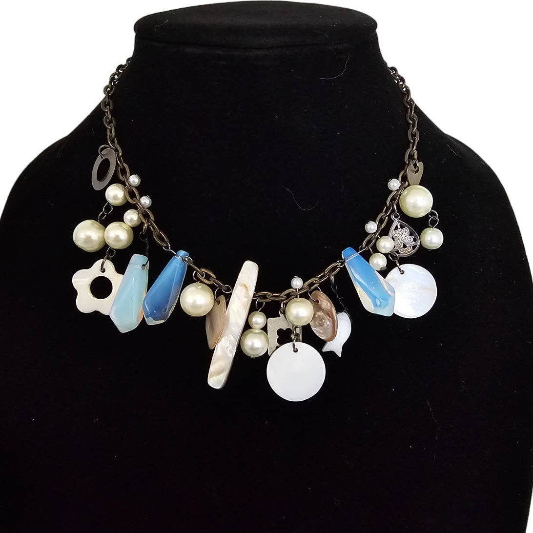 Vintage 1990s Art to ear Chain Necklace Mixed Media Charms Beads Blue White