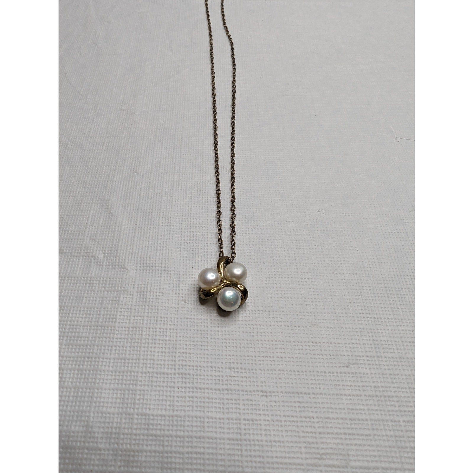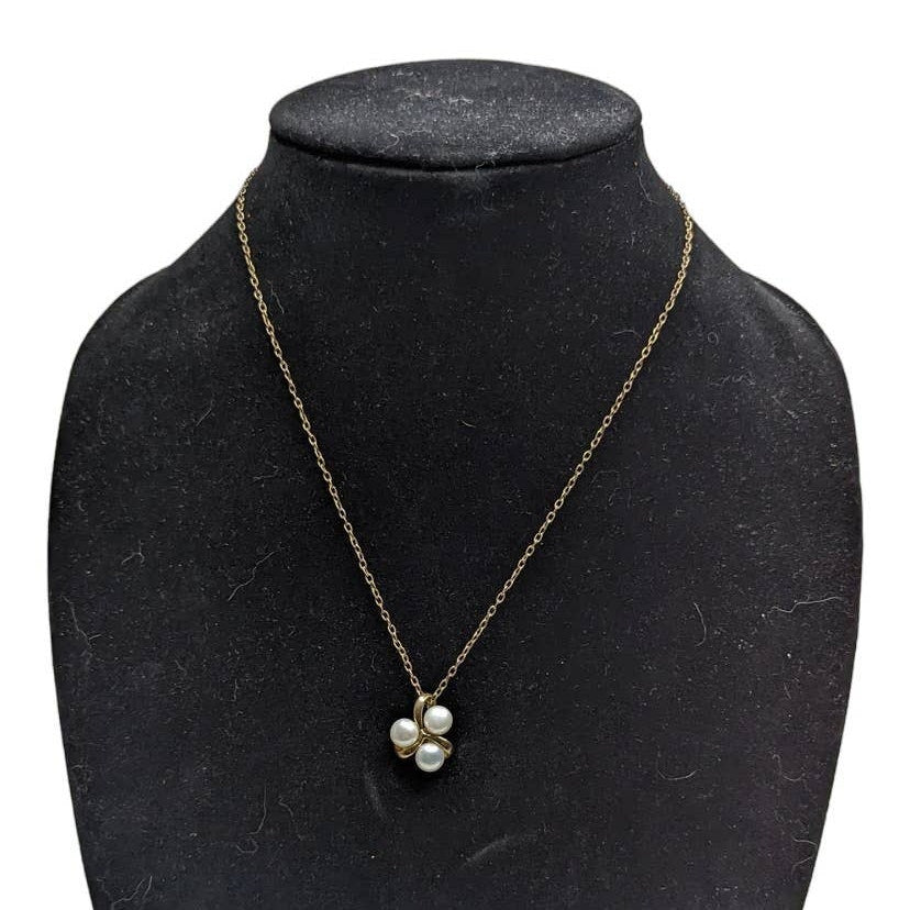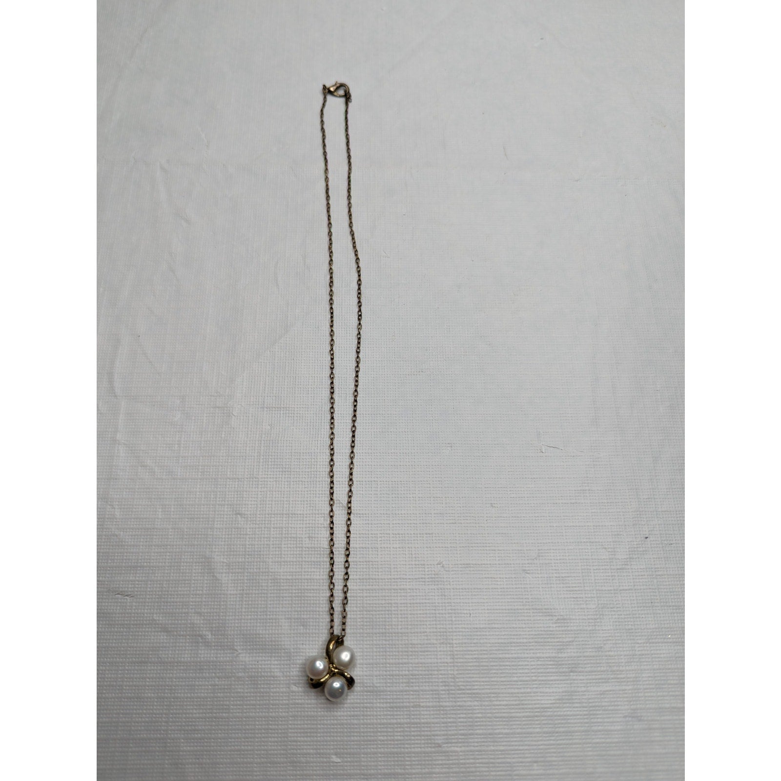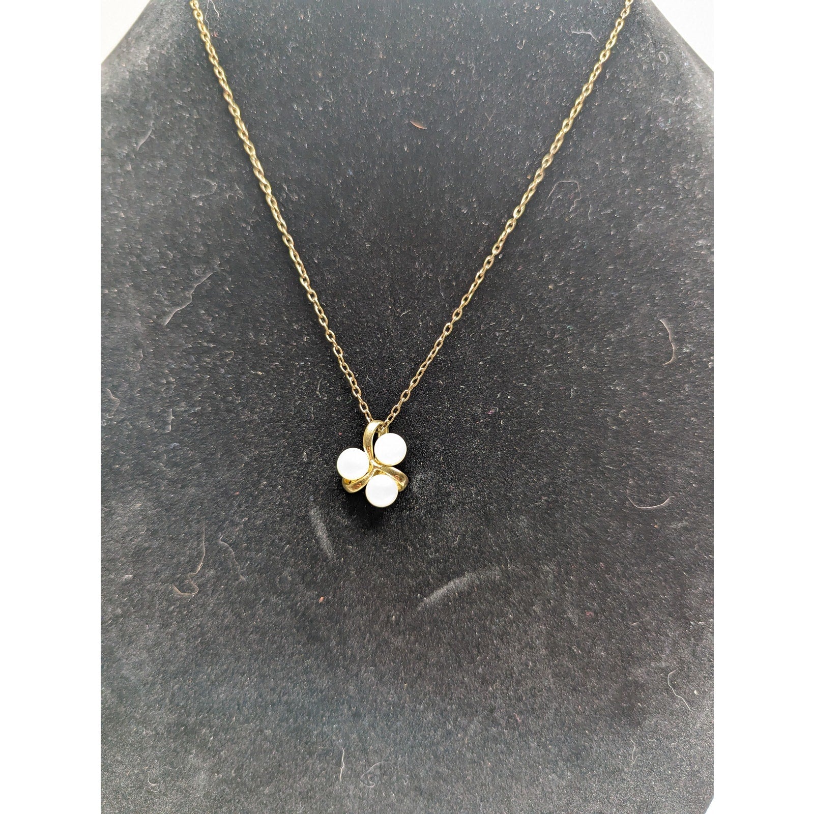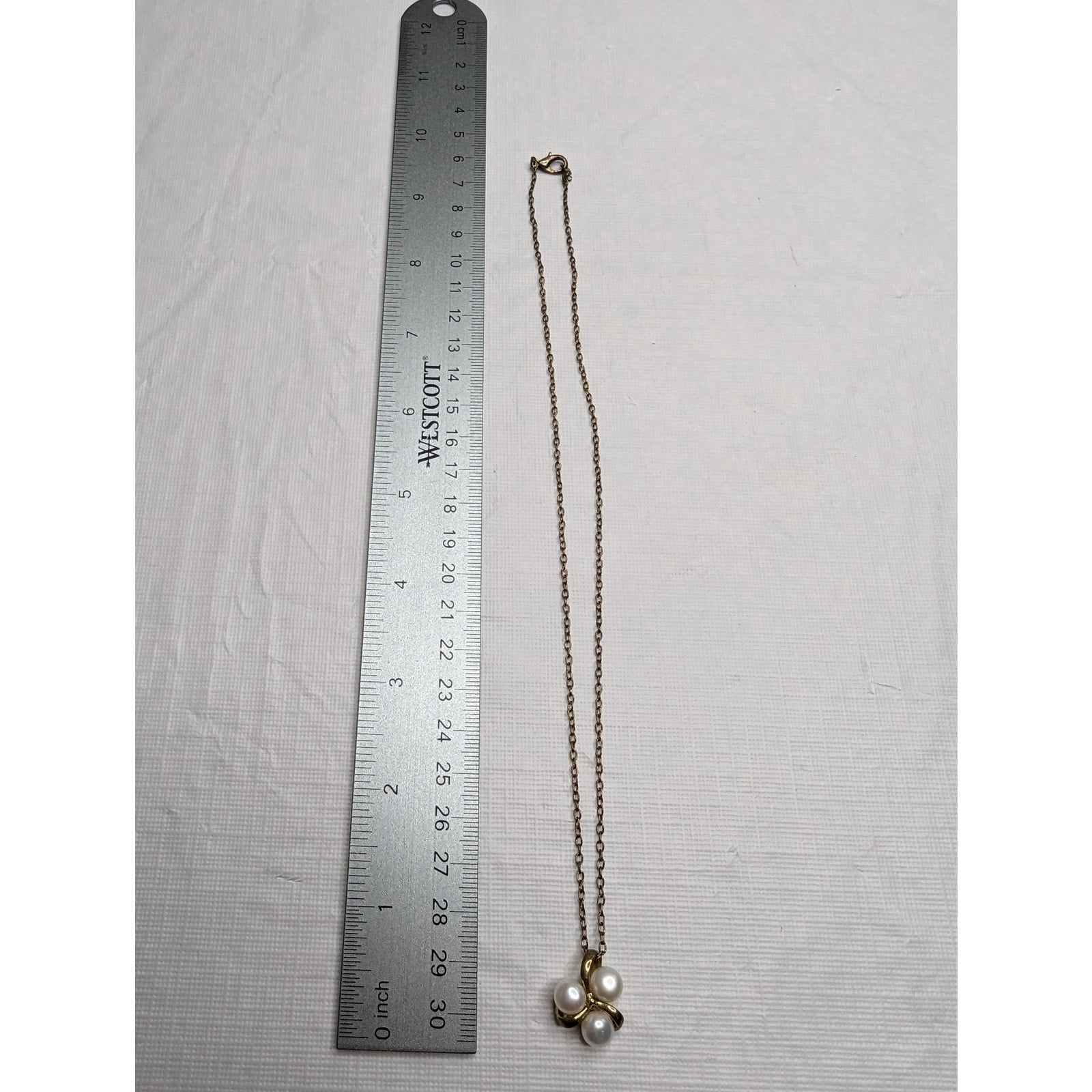Vintage 1990s Gold Tone Chain Pendant Necklace 3 Ivory Pearls