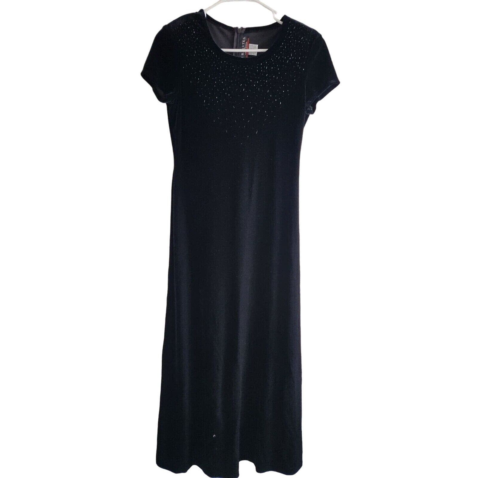 Vintage 1990s JR Nites Womens Sz 6 Maxi Dress Formal Black Beaded