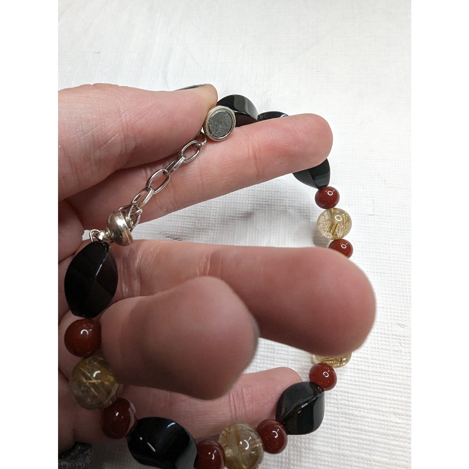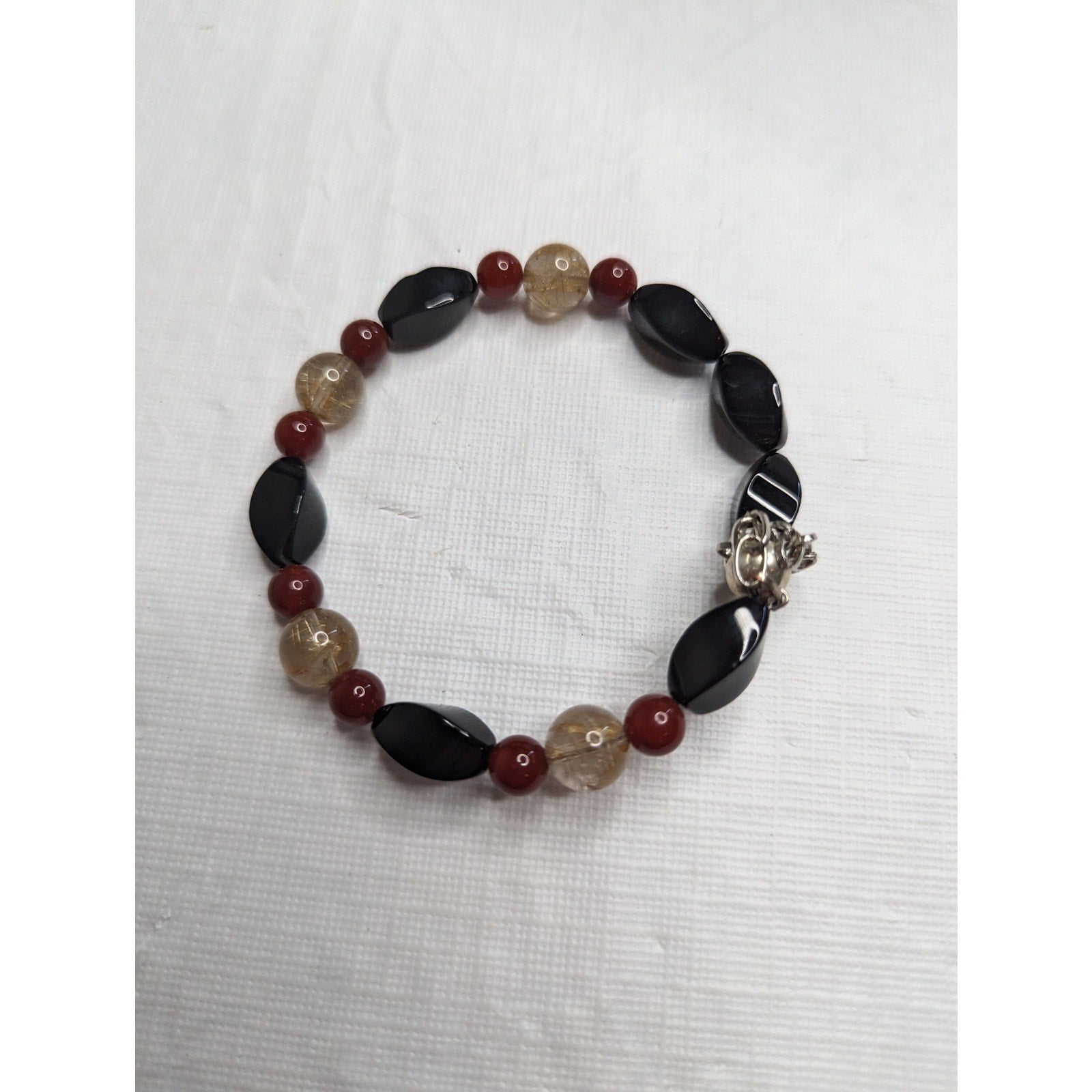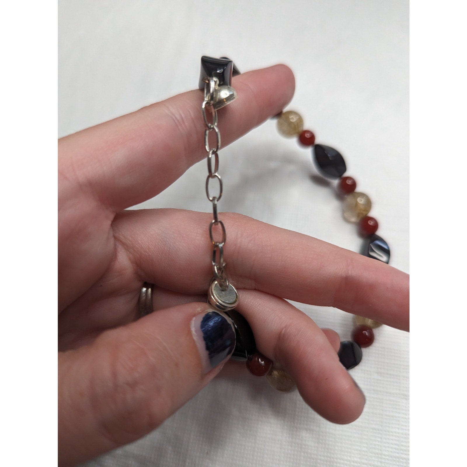 Vintage 1990s Magnetic Glass Beaded Single Strand Bracelet Black Red