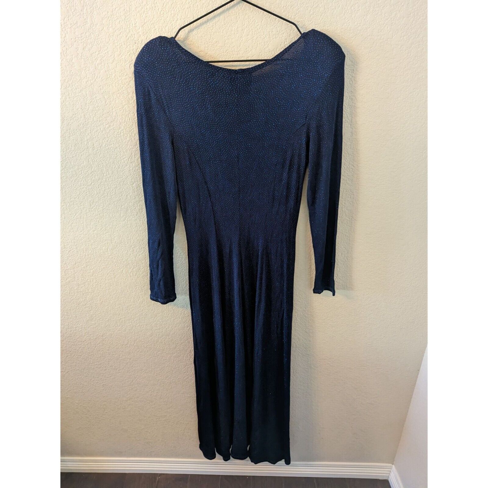 Vintage 1990s Midnight Glo Womens Sz M Maxi Dress Dark Blue Glitter Slinky