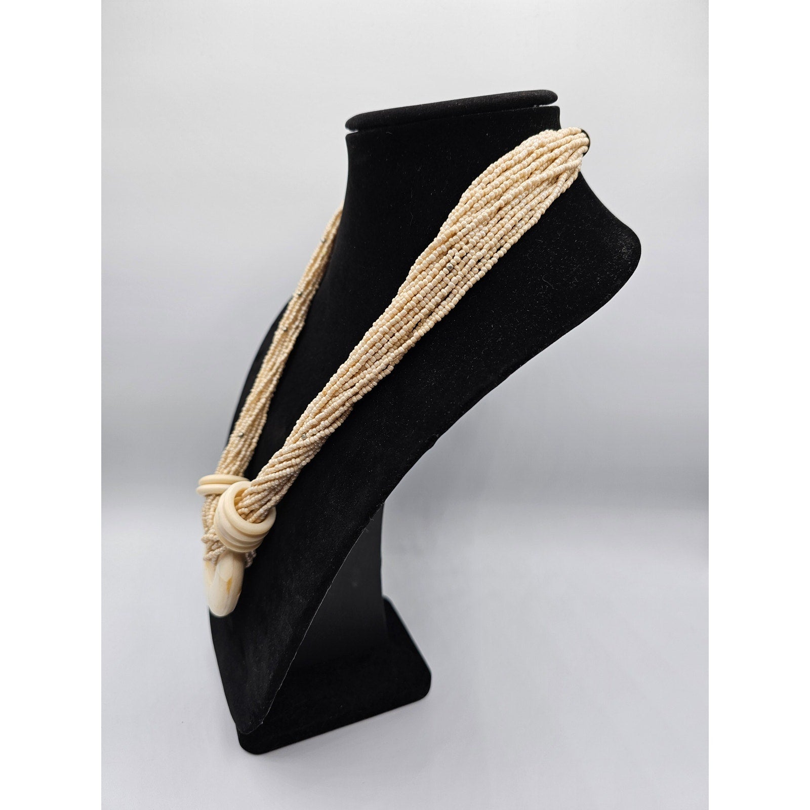 Vintage 1990s Multi Strand Seed Bead Necklace Cream Ivory Large Pendant