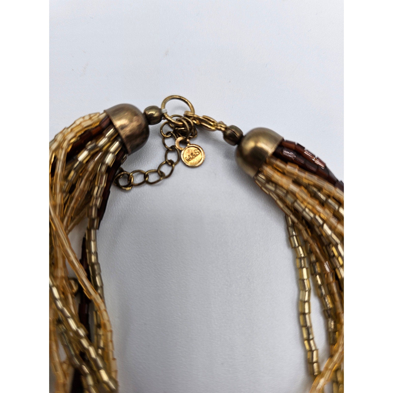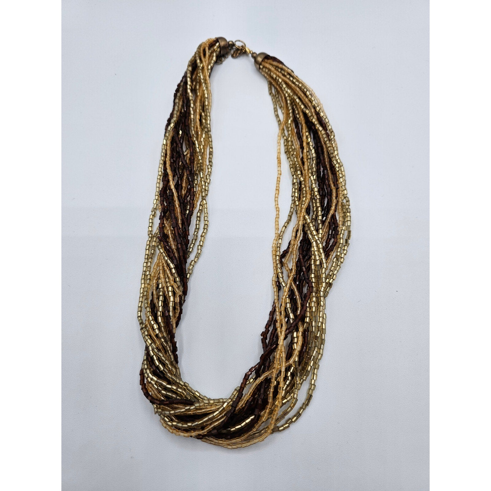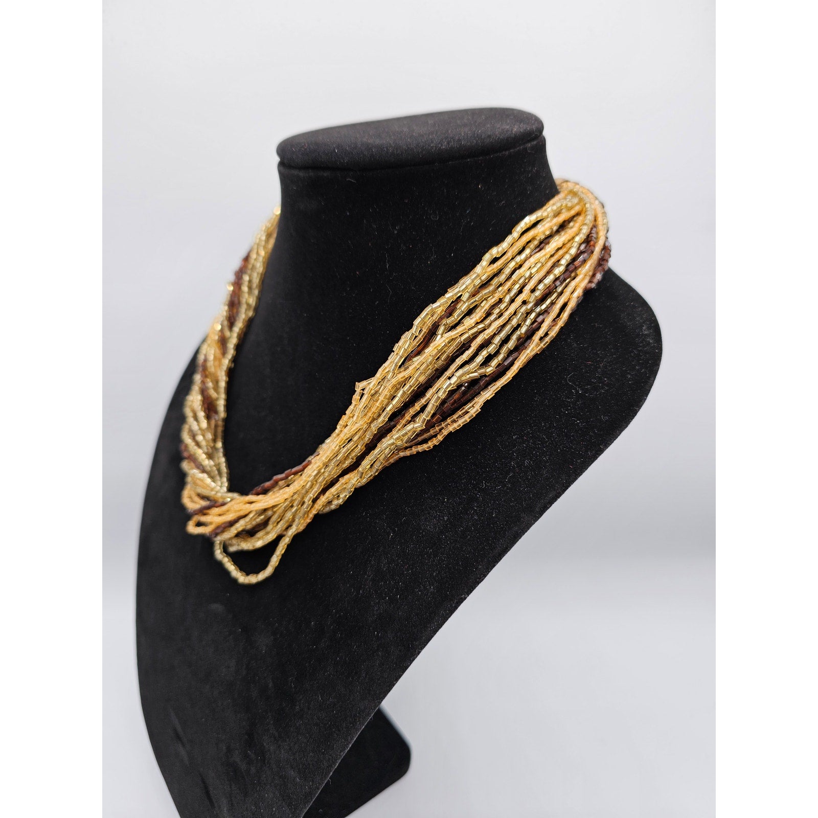 Vintage 1990s Multi Strand Seed Bead Necklace Gold Bronze Yellow