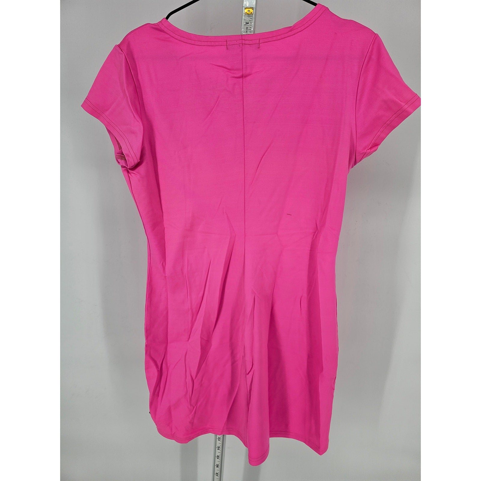 Vintage 1990s Nautica Womens M Mini Dress Bright Neon Pink Spandex Short Sleeve